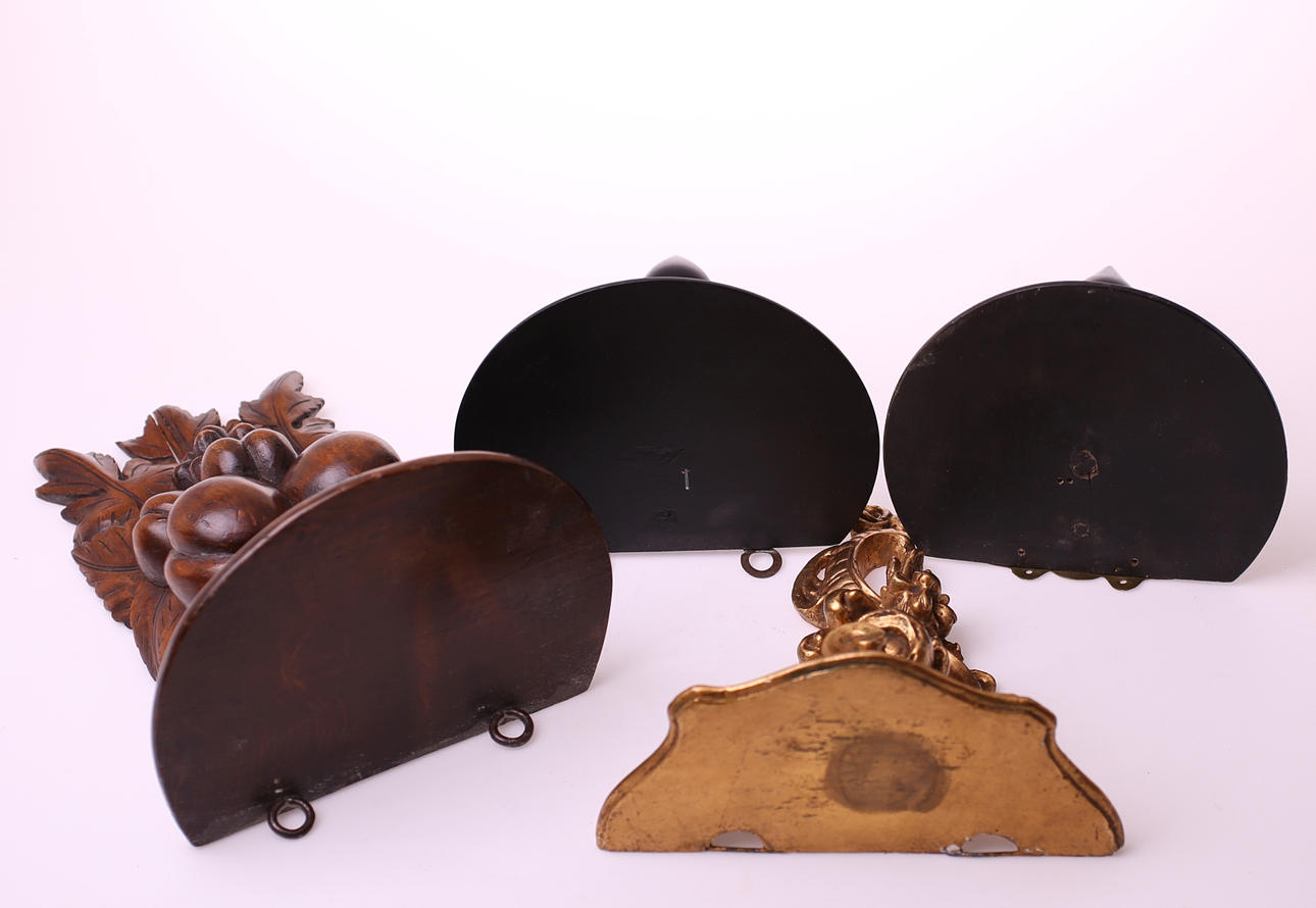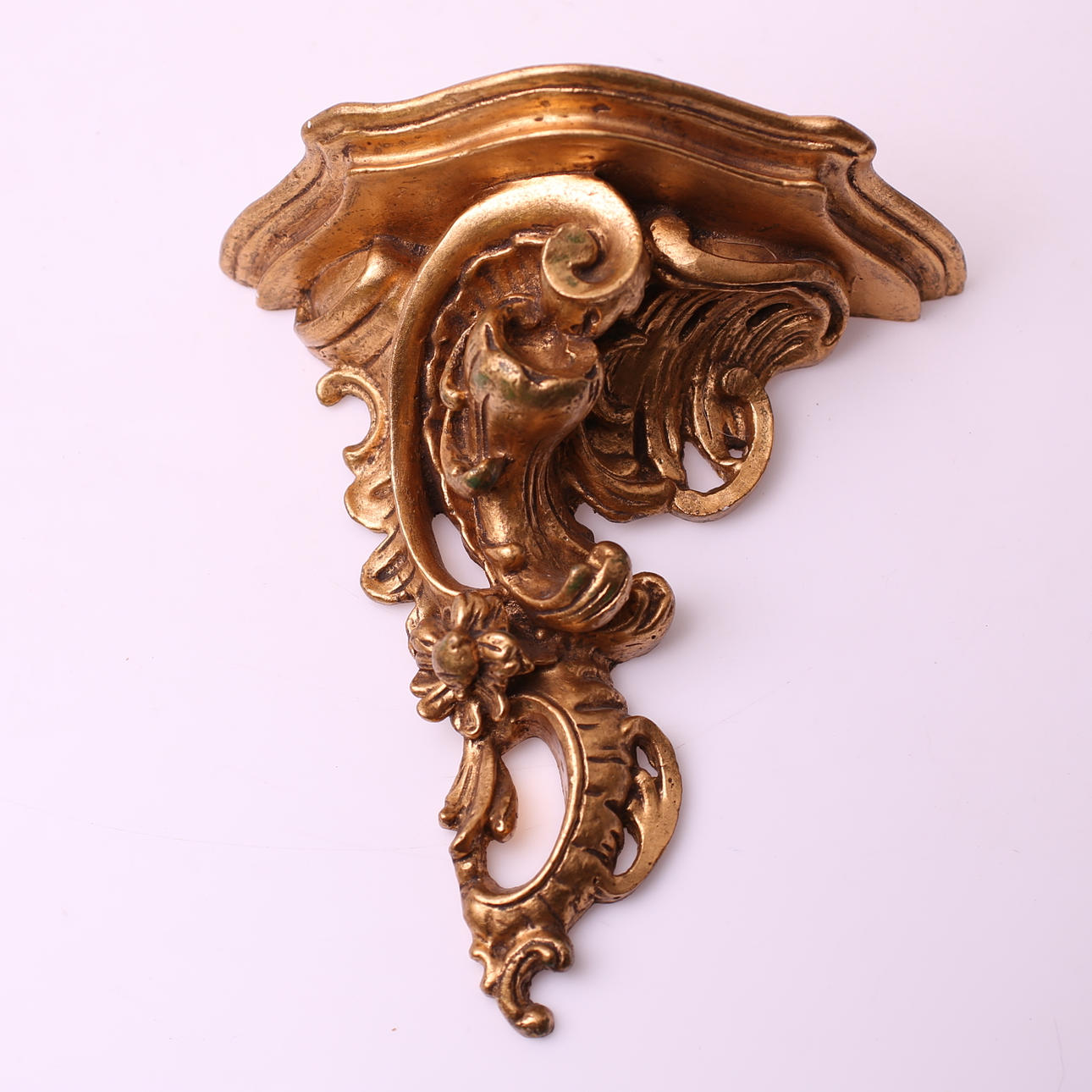 Förgylld vägghylla, gips, rokokostil, höjd 20 cm, bredd 19 cm.