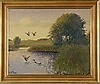 Sträckande änder. Oidentifierad monogramsignering. 41x51 cm.