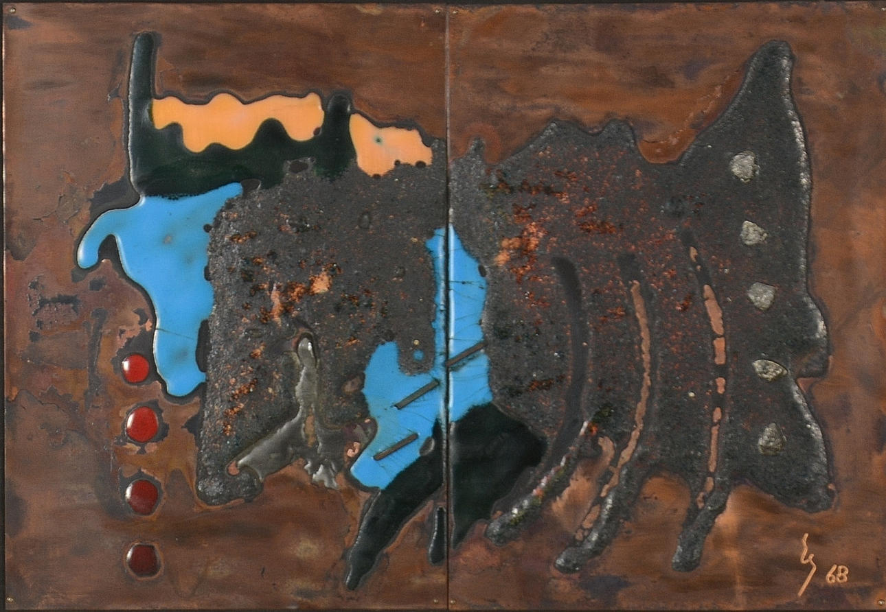 770967. OIDENTIFIERAD KONSTNÄR. Emaljmålnig.
