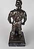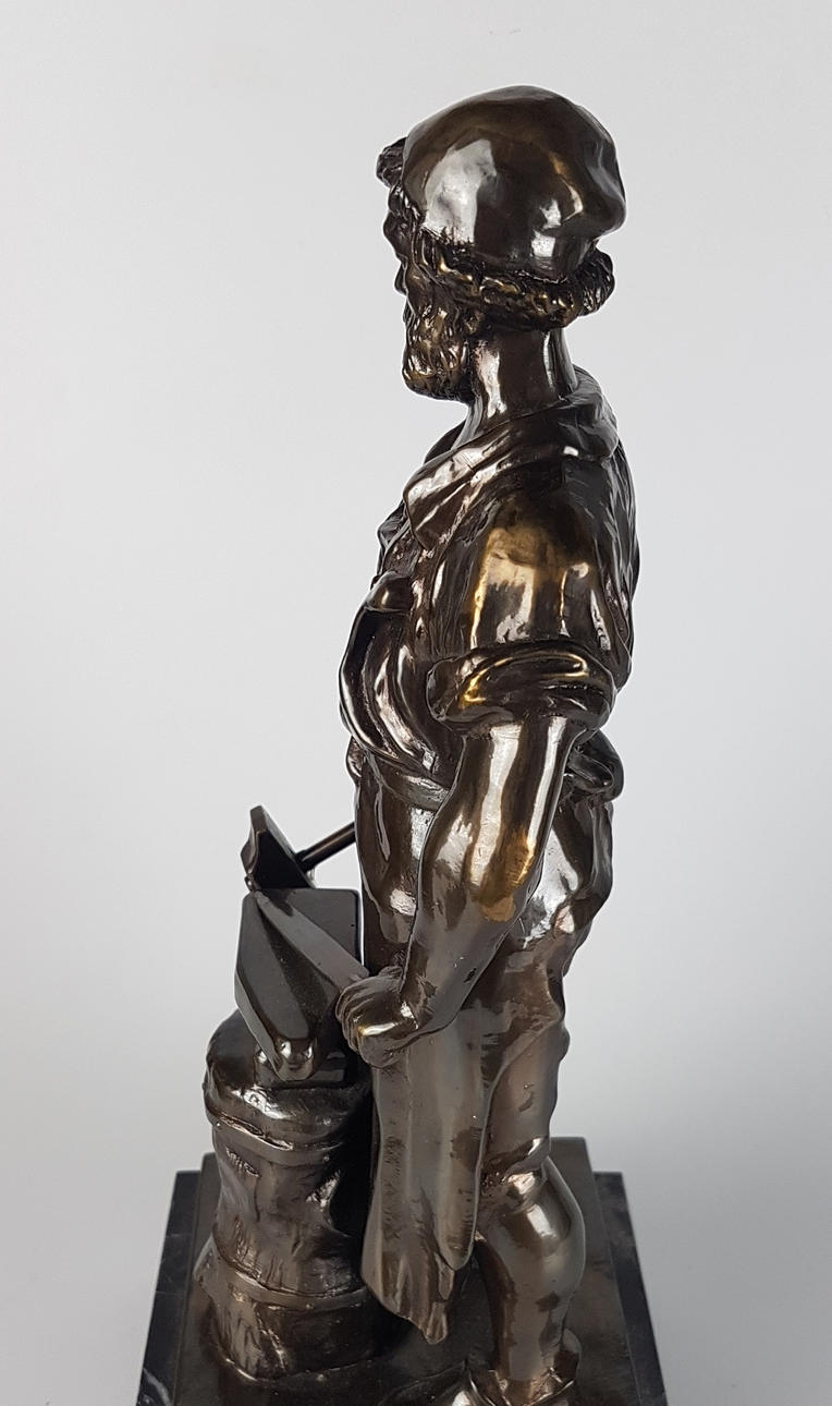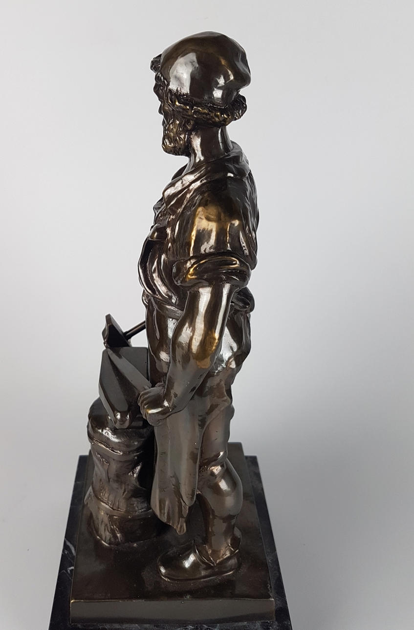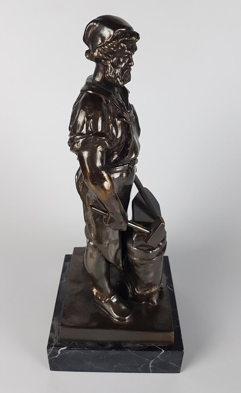 Metallskulptur ”smed”, ett blad smides på städet med en hammare, på en fyrkantig marmorbas, höjd ca.. 35 cm, sockel ca. 14 x 14 cm, vikt ca. 5,8 kg.