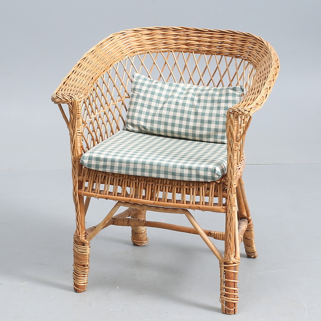 771718. KORGSTOL, klädd dyna och kudde.