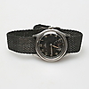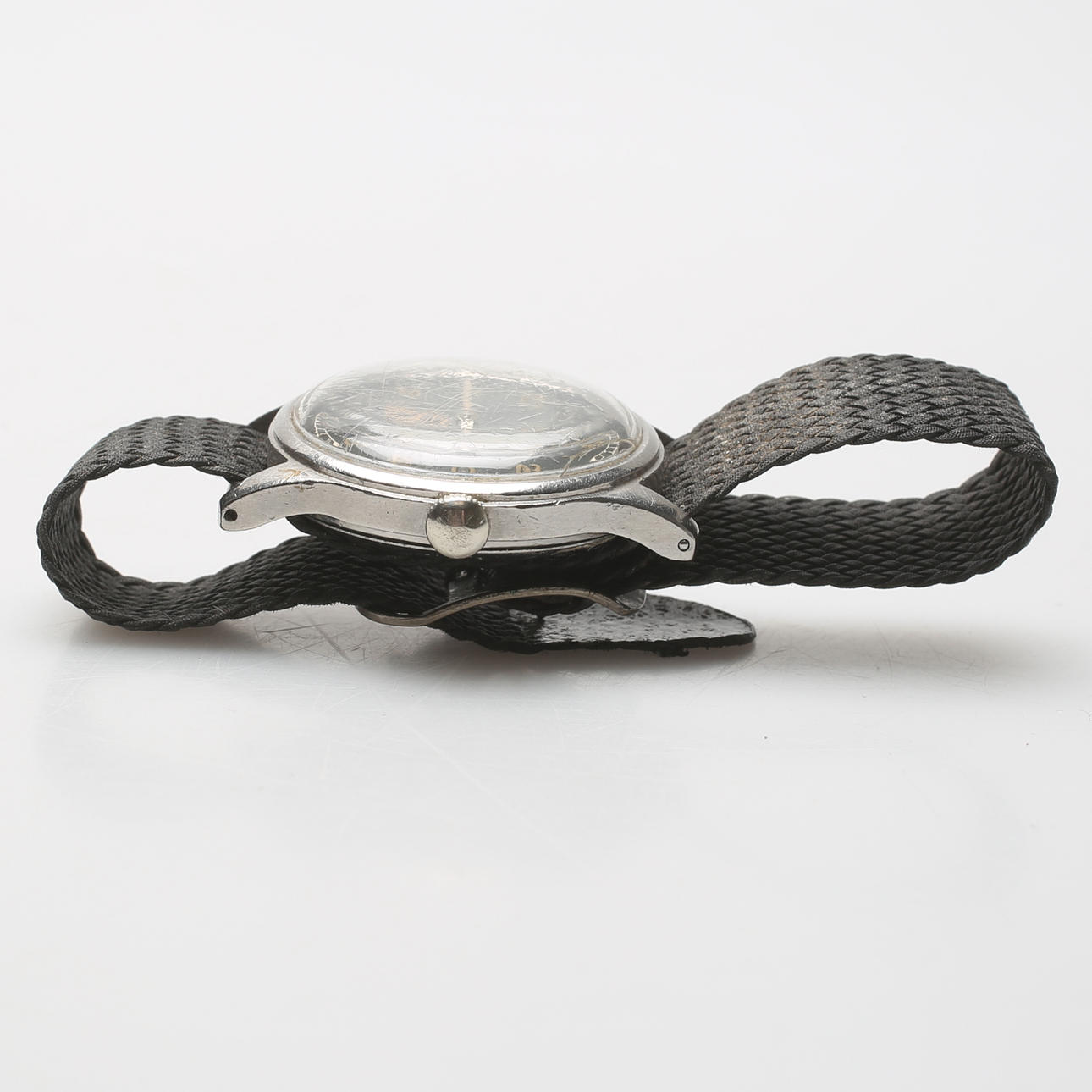 Stål, manuell, mekaniskt urberk, svart urtavla, diameter ca. 35 mm.
