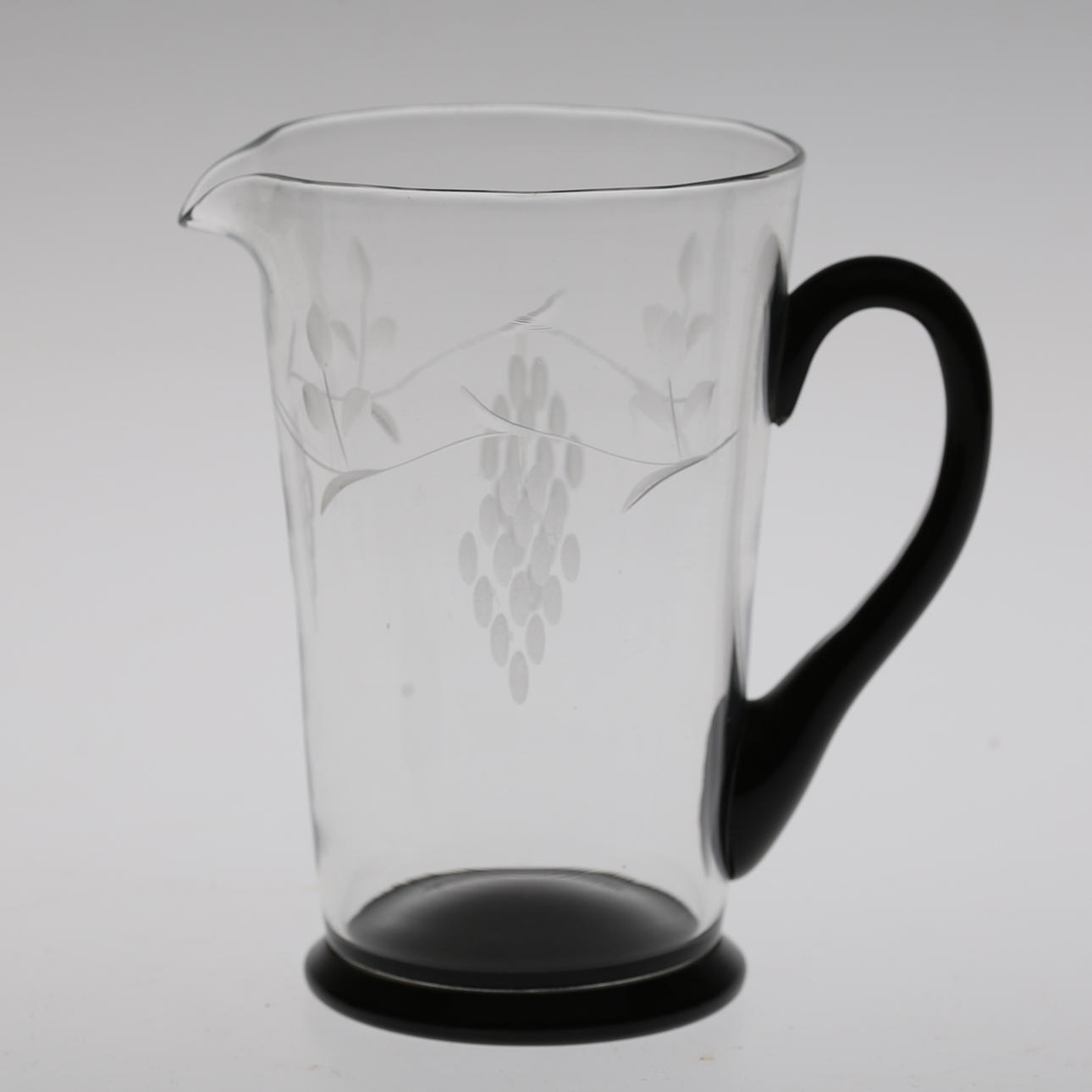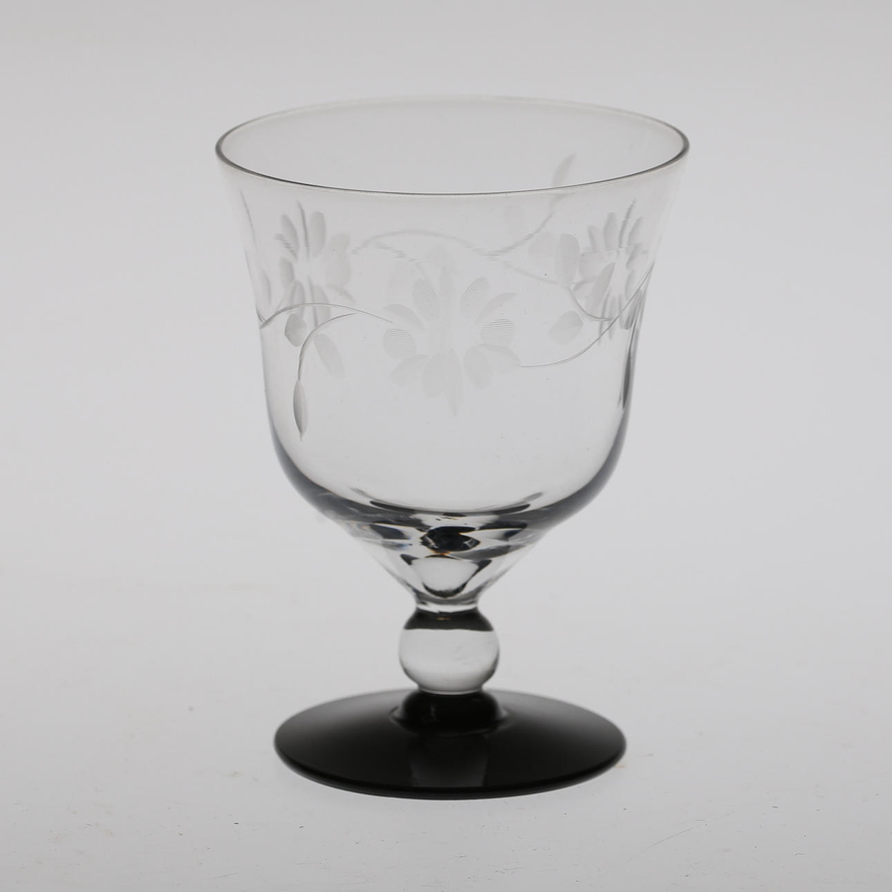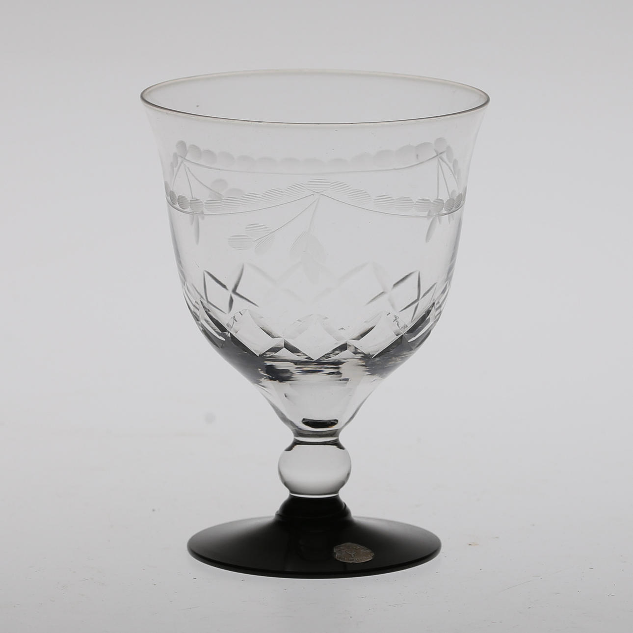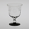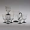 Karaff, höjd 16,5 cm. 8 glas, 2 snarlika dekorer, höjd ca 12 cm.