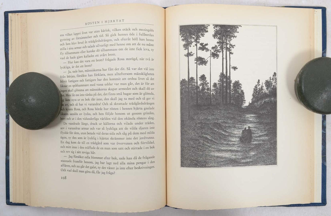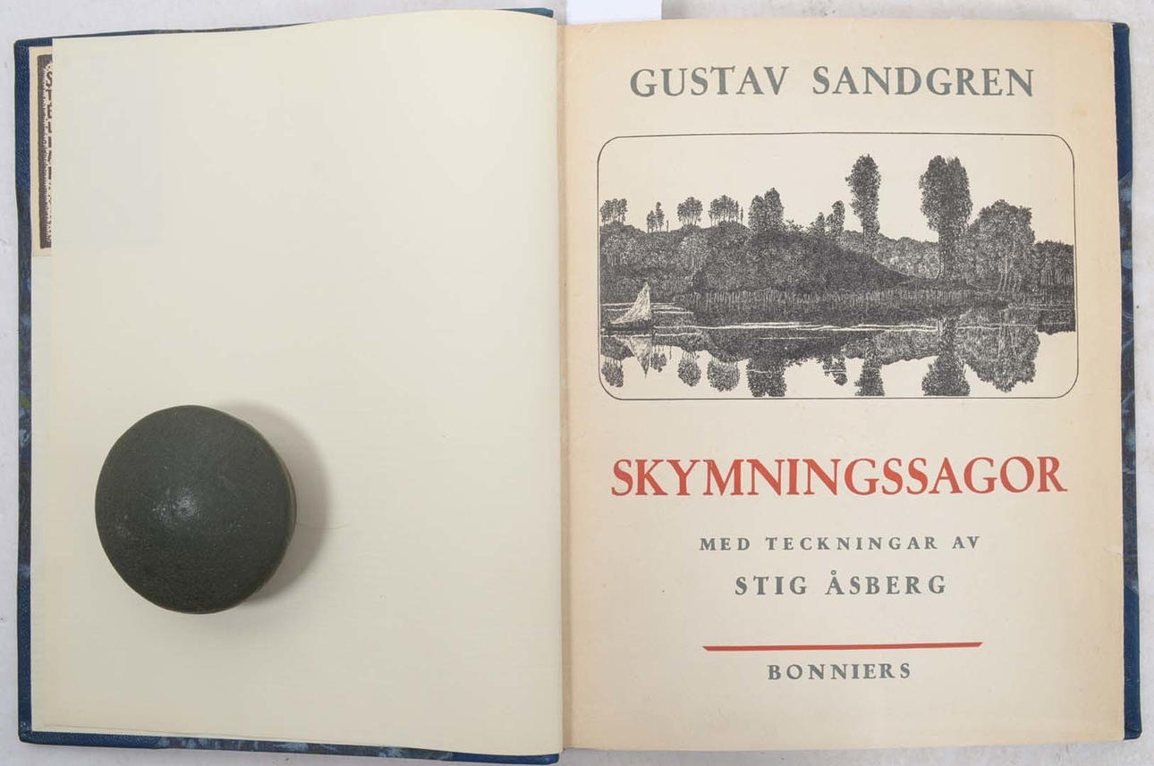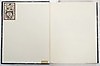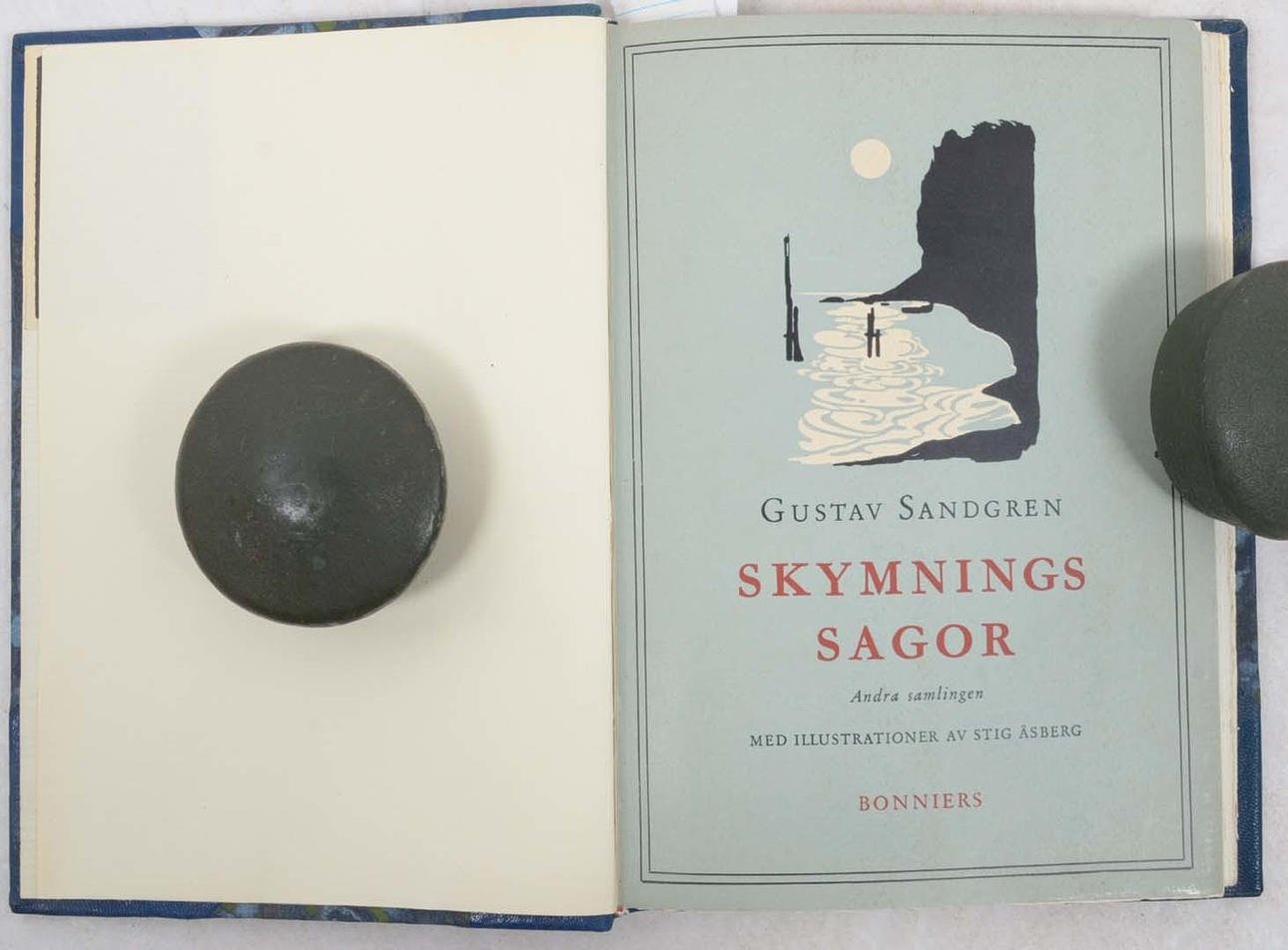 Stockholm, Albert Bonniers förlag, 1936-46. Liten 4:o. 148 s. resp. 8:o. 144 s. (första bladet tomt). Illustrationer av Stig Åsberg. Två volymer. Uniforma blå halvmarokängband, Guldornerade ryggar, upphöjda bind, marmorerade pärmpapper, övre guldsnitt. Alla omslagen medbundna. Utfört av Stellan Lindskogs bokbinderi, Göteborg.