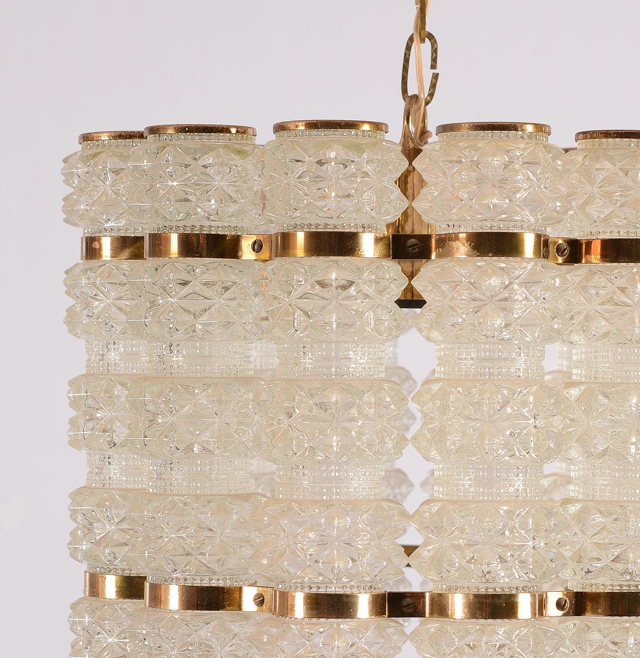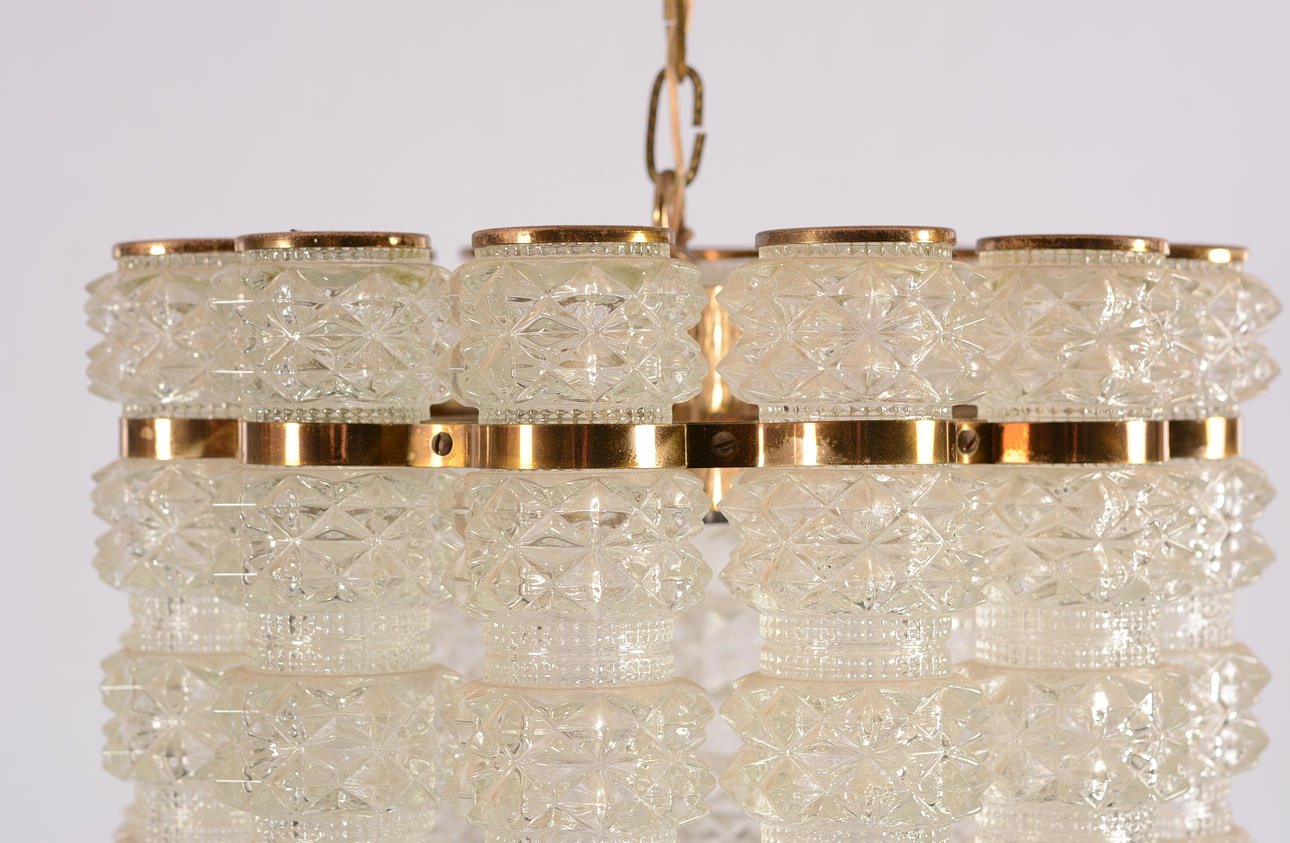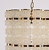 TYRINGE KONSTHANTVERK, taklampa, glaskupor från Orrefors, stomme i mässing, höjd 24 cm, diameter 30 cm.