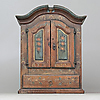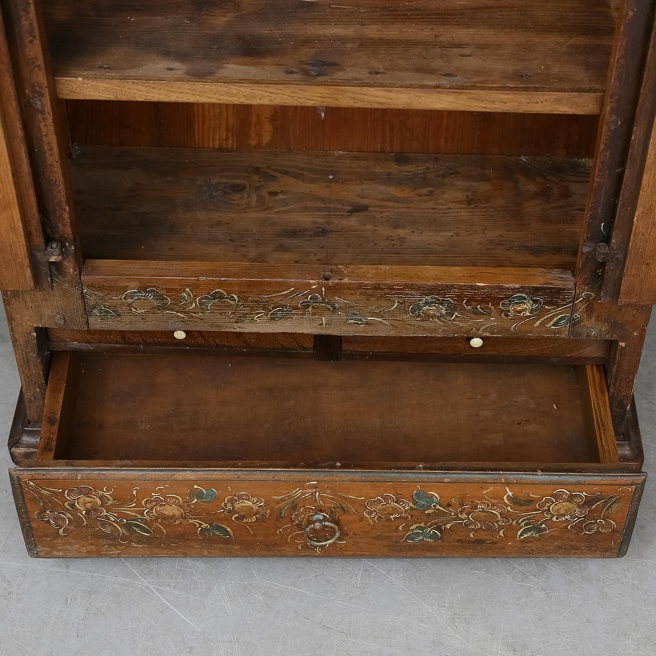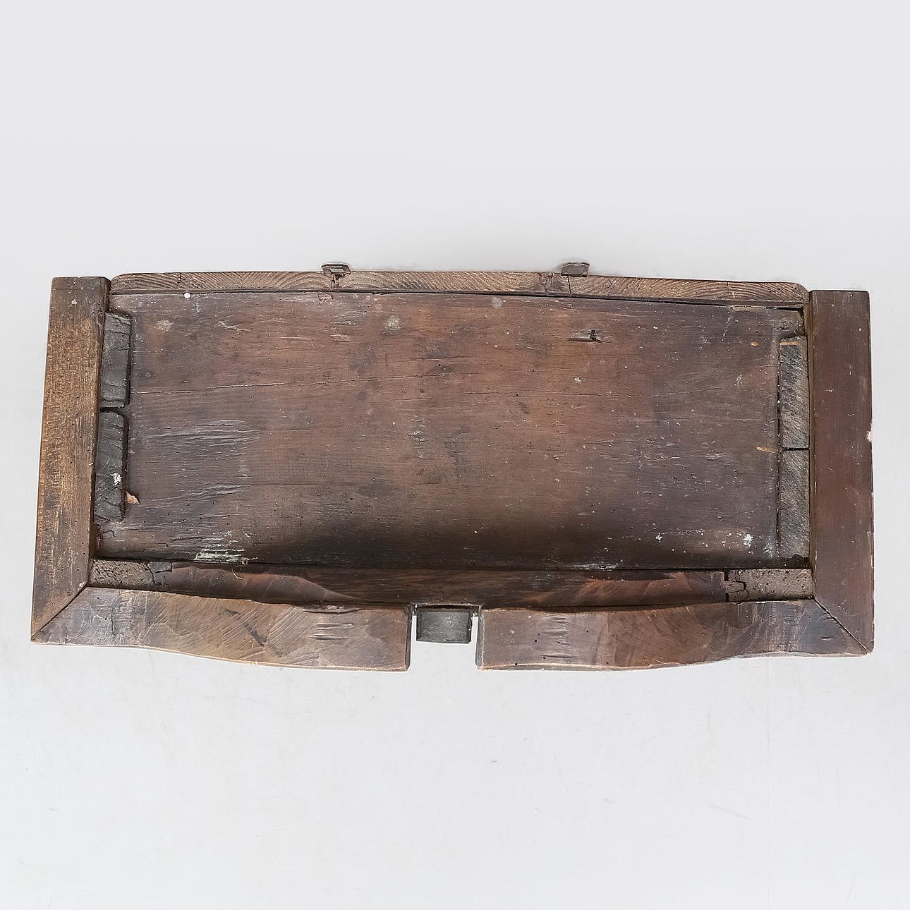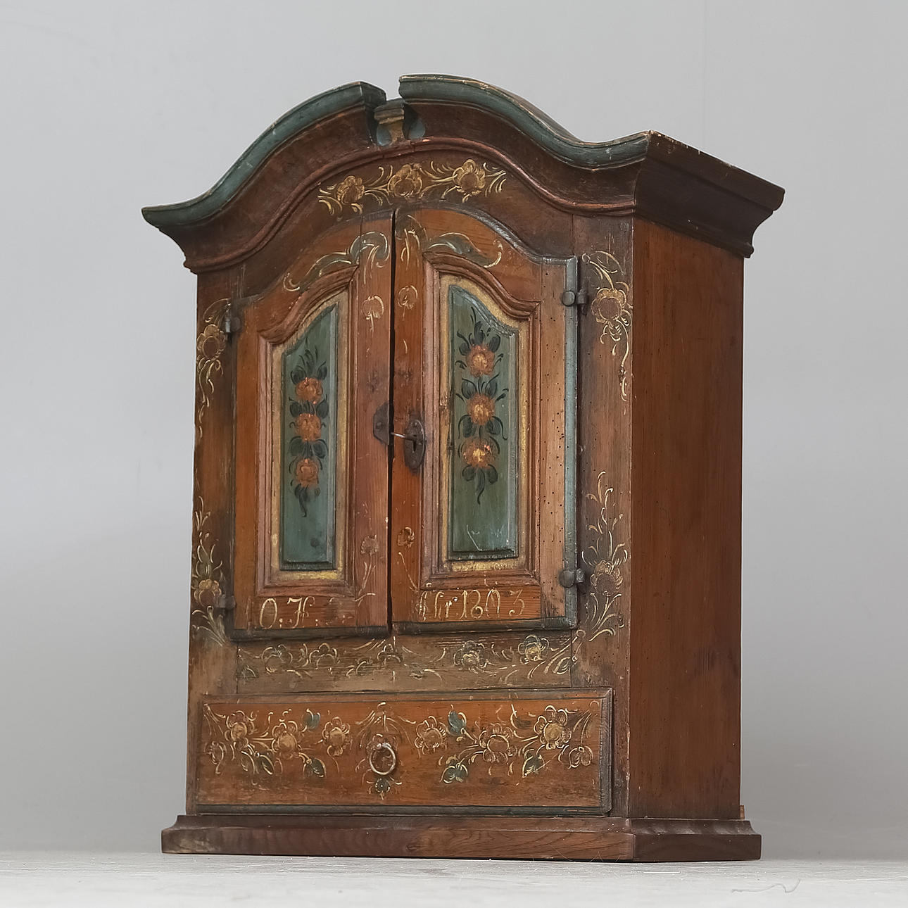 Ålders samt bruksslitage. Maskstunget. Senare lås.Samtliga 3 lådor med senare botten. Baksida med skruvar. Bottenlister senare, dock antika.