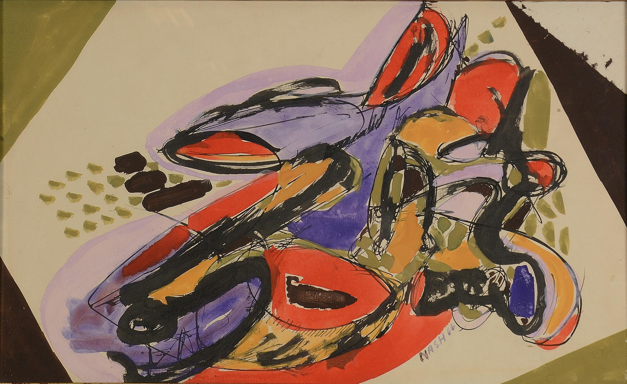 Abstrakt kompostition, signerad och daterad -66, 30x49 cm.