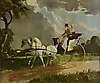 Personer till häst och vagn. 50x59 cm.