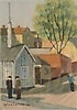 Stadsbild med personer. Signerad samt daterad -65. 29x20 cm.
