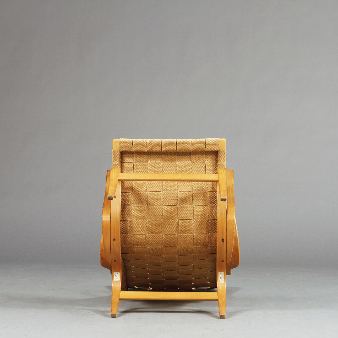 Stomme i böjlimmad bok med sits i flätad sadelgjord. Etikettmärkt samt handsignerad BM 44.