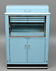 Blålackerad. På hjul. Längd ca 81, bredd 39, höjd ca 118 cm.