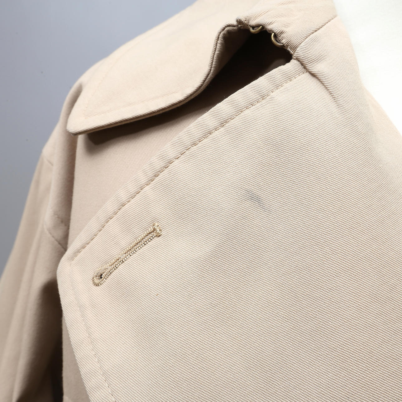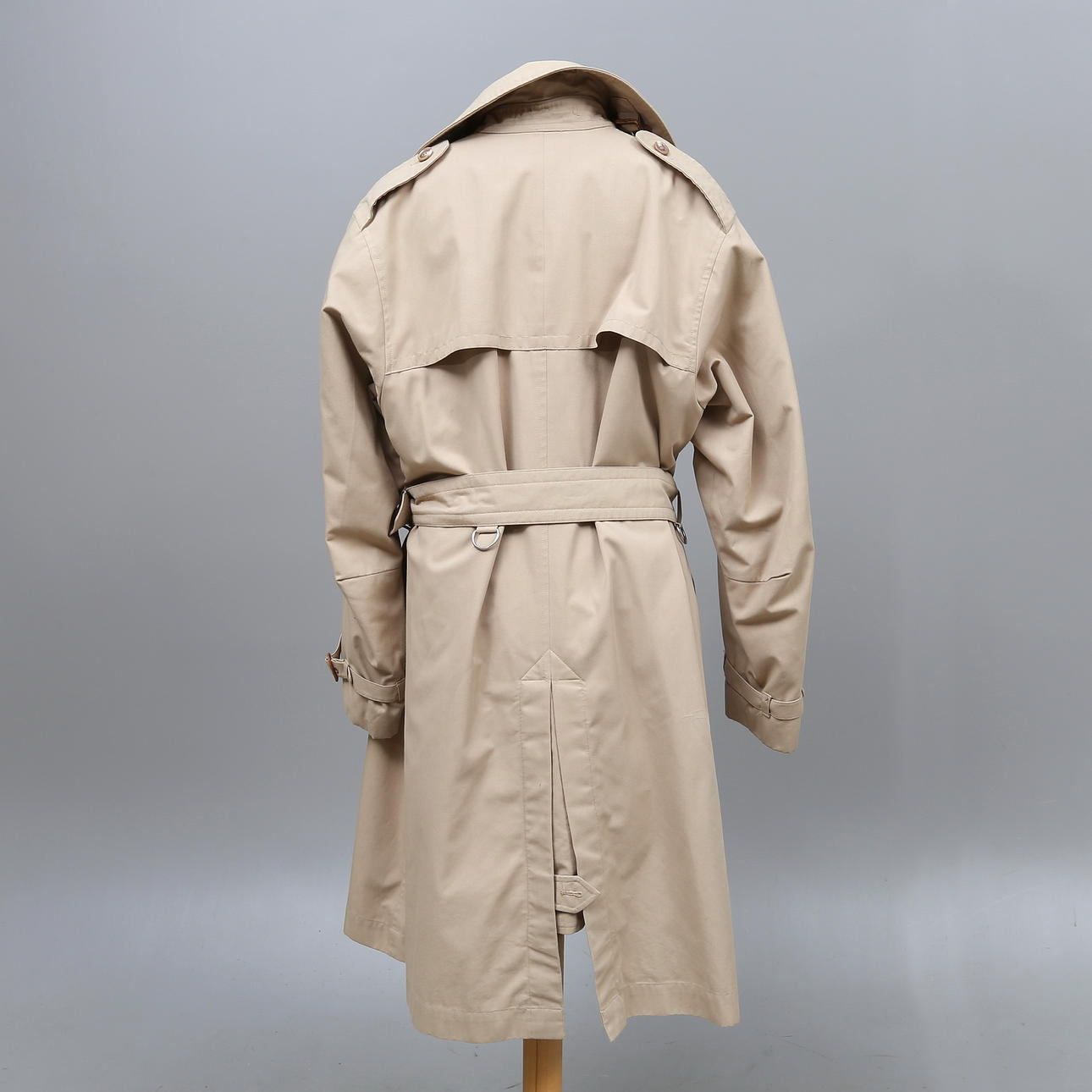 Herrmodell med bälte i midjan Längd mitt bak exklusive krage ca 107 cm, armlängd från armhålan ca 49 cm.