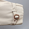 Bruksslitage, en knapp saknas, läder saknas kring spänne.