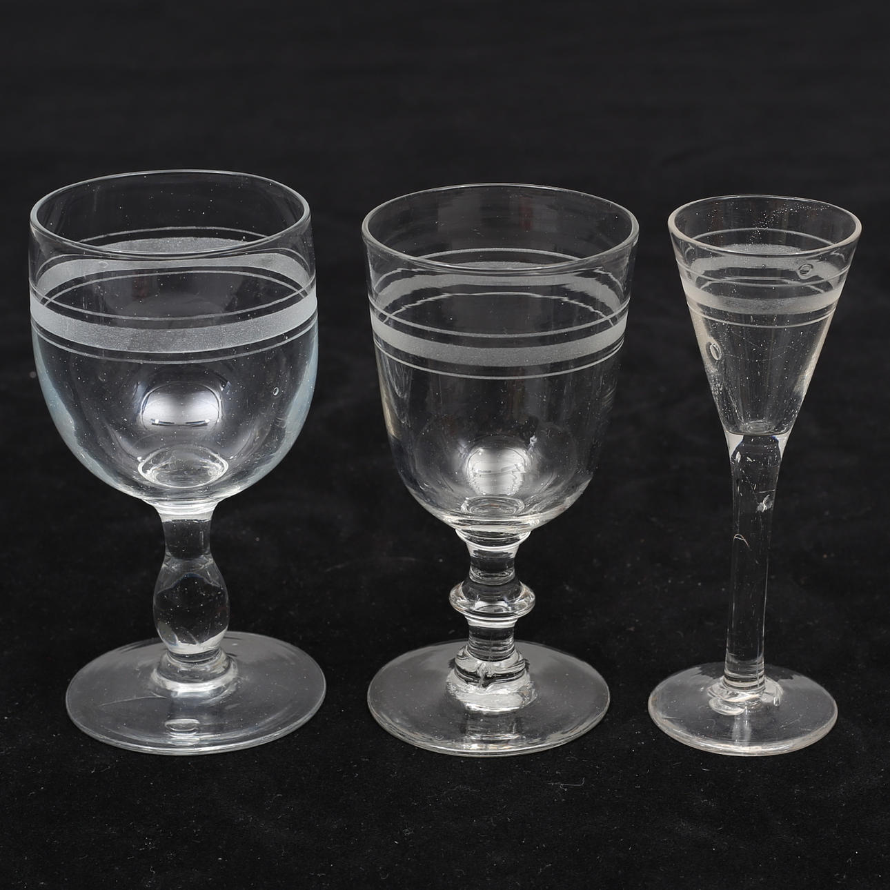 3 vinglas och 4 snapsglas med Rydbergsmönster 13,5 - 15 cm.