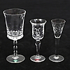 9 snapsglas med slipad fot och blomdekor Orrefors 13 cm.