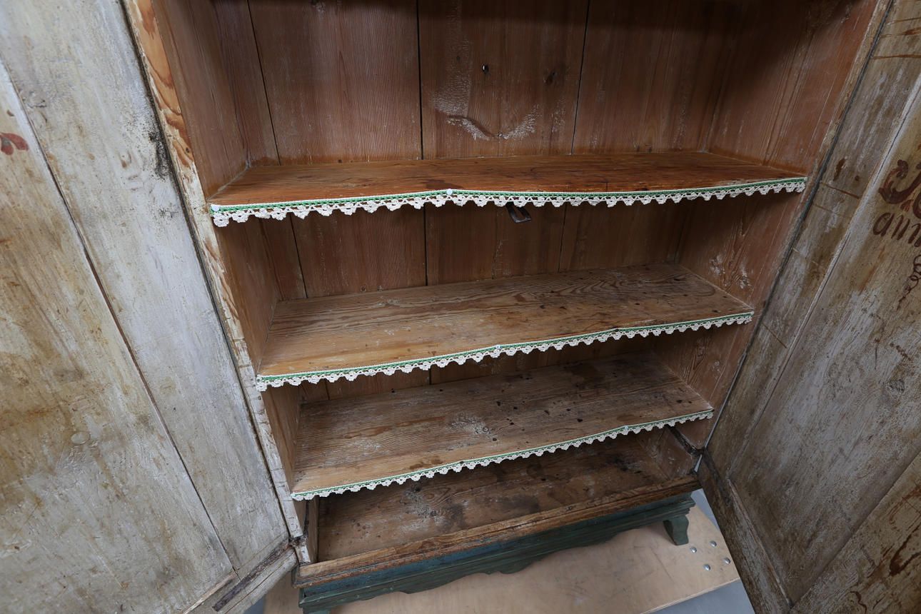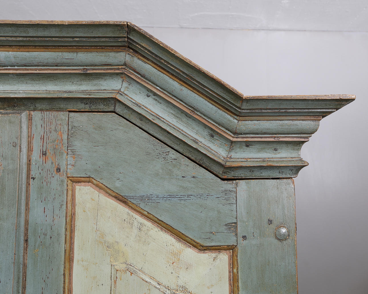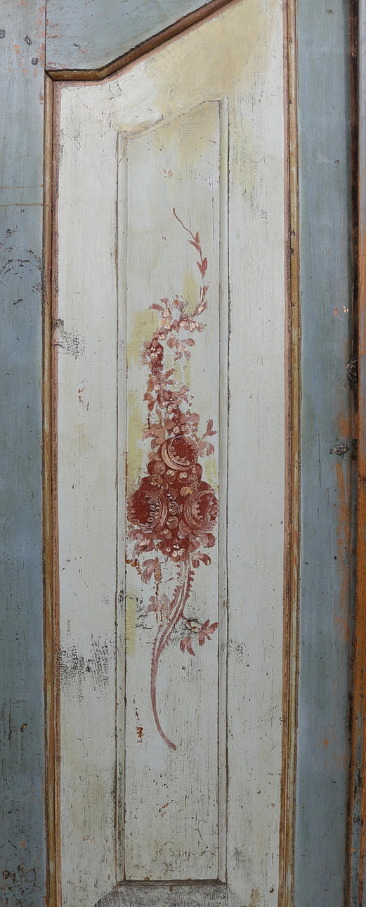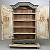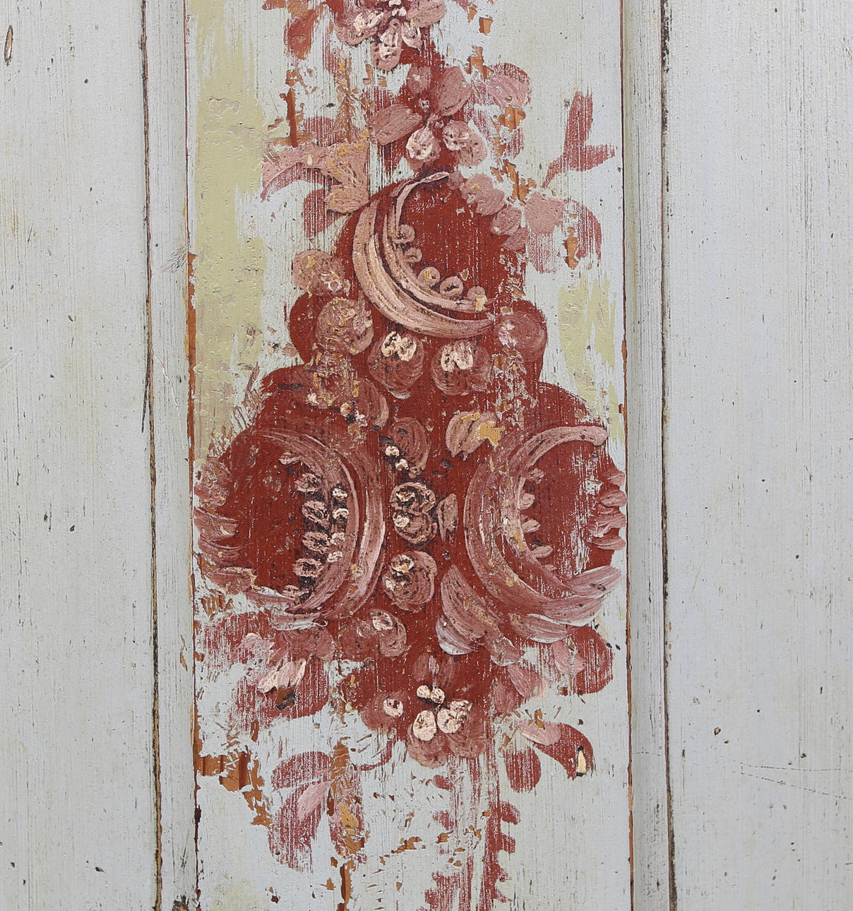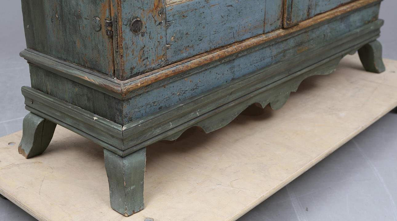 Bemålat. Svängda ben. Daterat 1775. Längd ca. 140, bredd 46, höjd 208 cm.