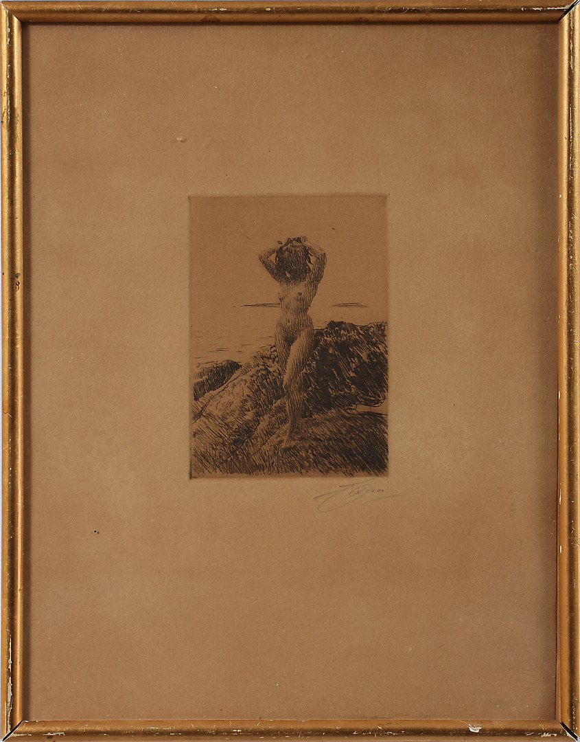 80935. ANDERS ZORN. Etsning, "Hårtång", signerad, 1914.