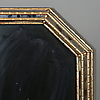 Oktagonal ram med spegelglas och bronserad trästomme.