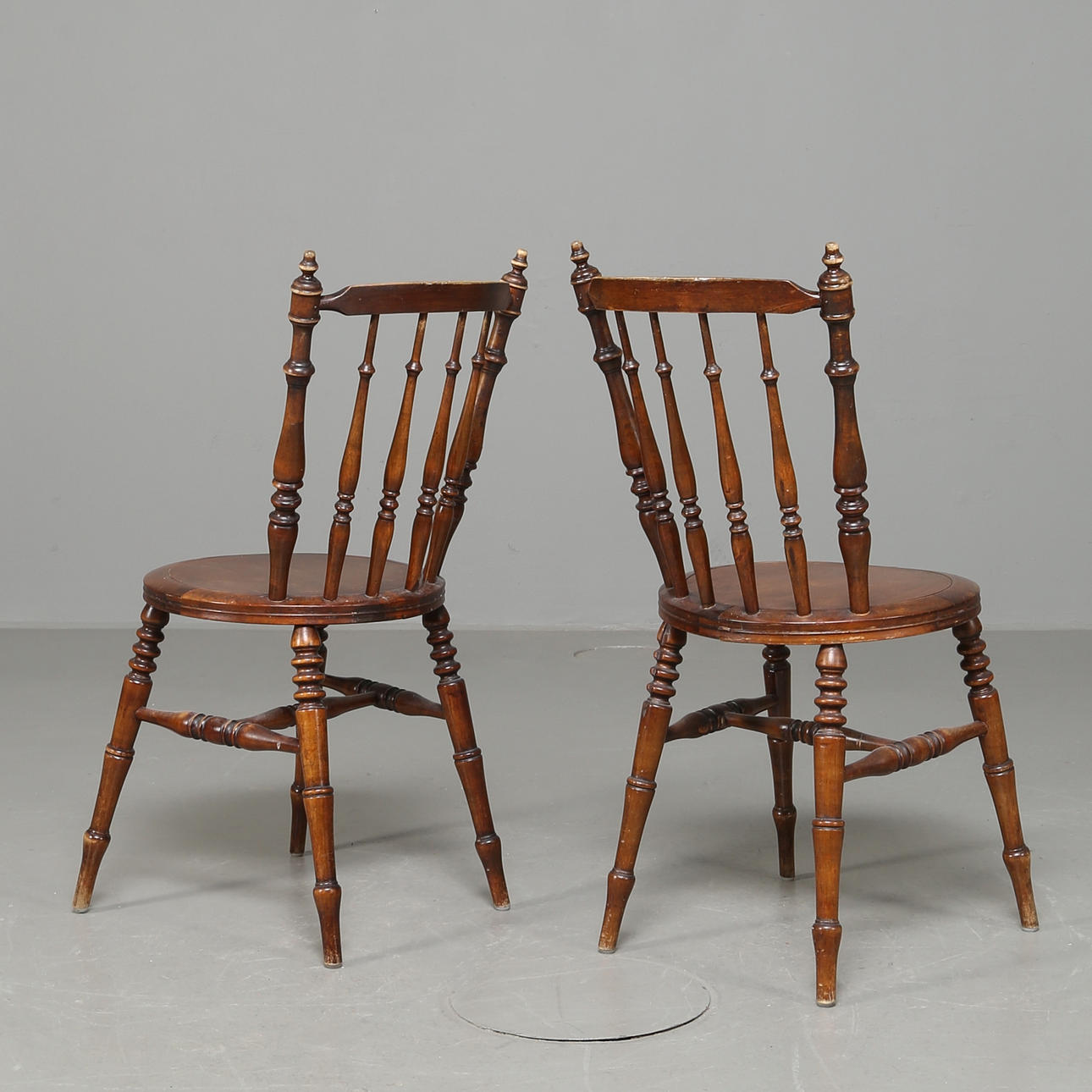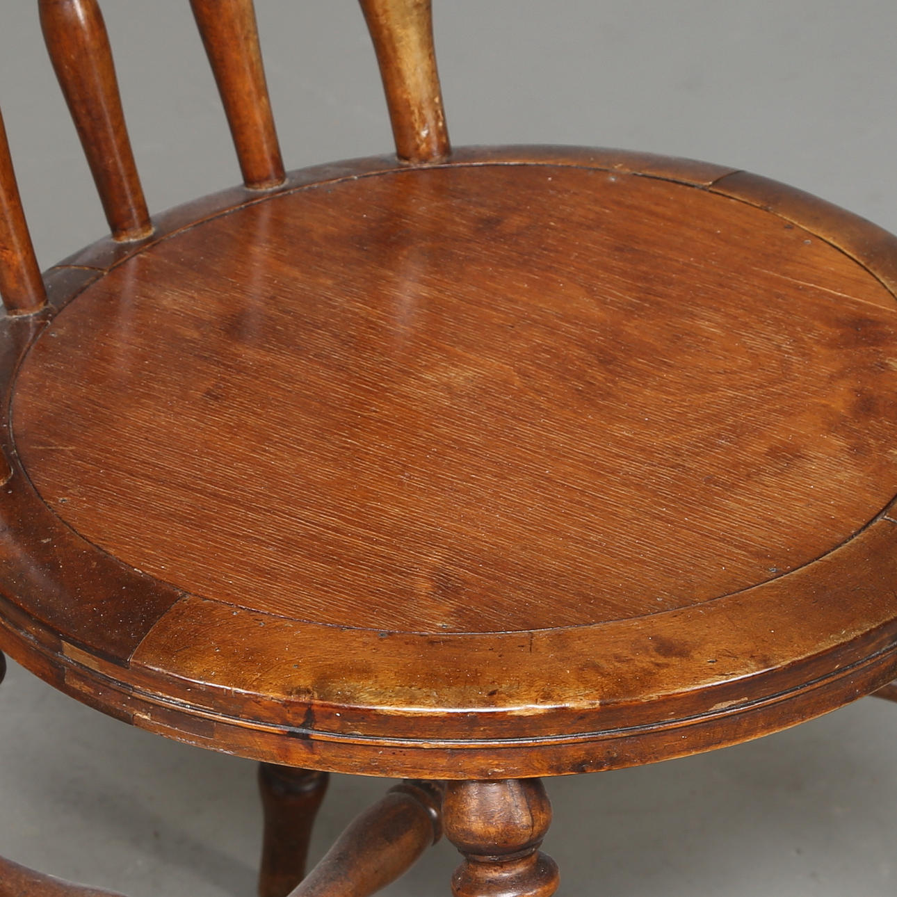 Betsad bok, svarvade och kopplade ben, balusterdockor i ryggen. Fast sits. Bredd 42 cm Djup 48 cm Höjd 89cm Sitthöjd 46 cm.