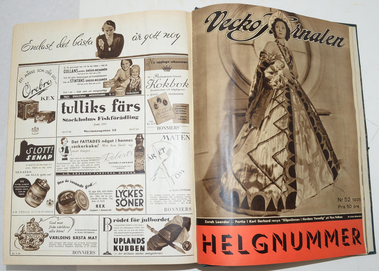 Åhlén & Åkerlund 1935. 52 nummer à 60 sidor styck. 34x27x7 cm. Sammanbundna i ett Grönt halvklotband.