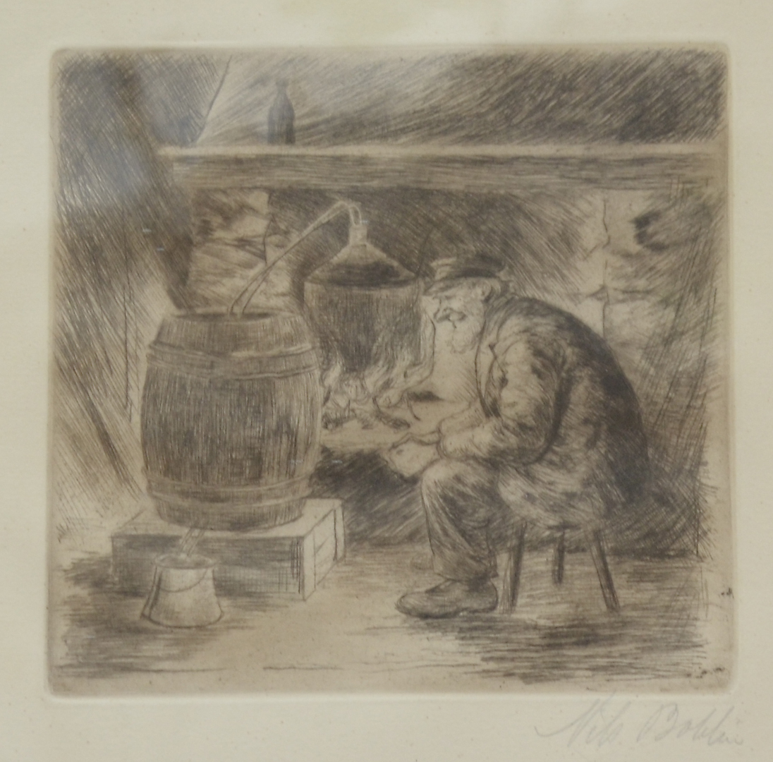 812407. NILS BOHLIN. "Hembrännaren". Etsning. Signerad.