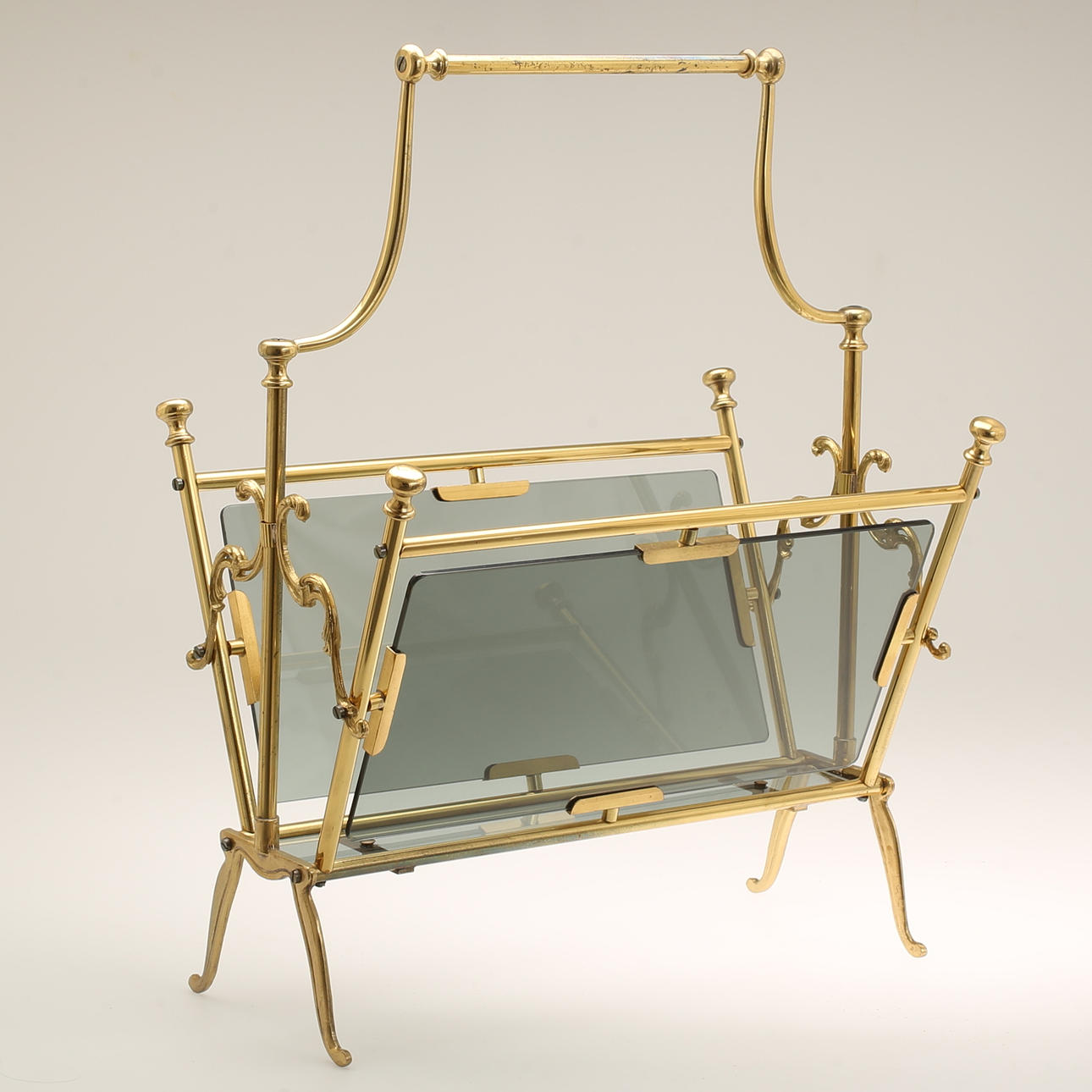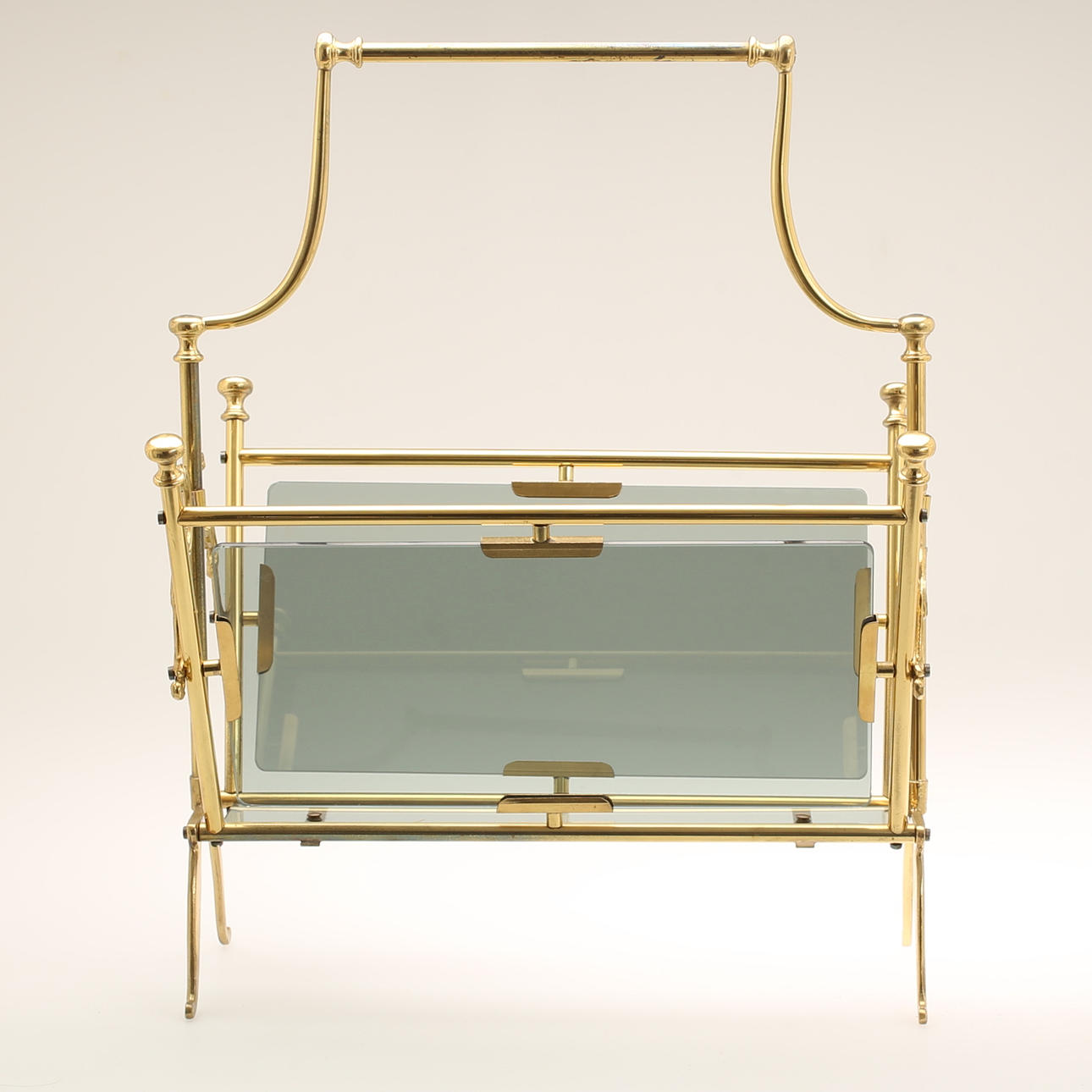 TIDNINGSSTÄLL, mässing och glas.