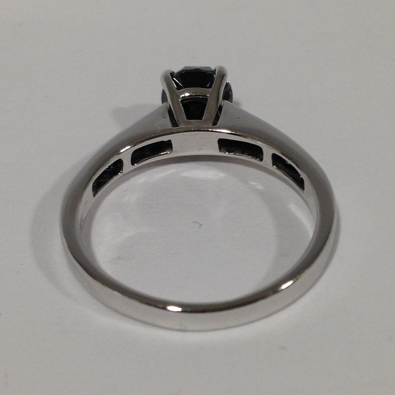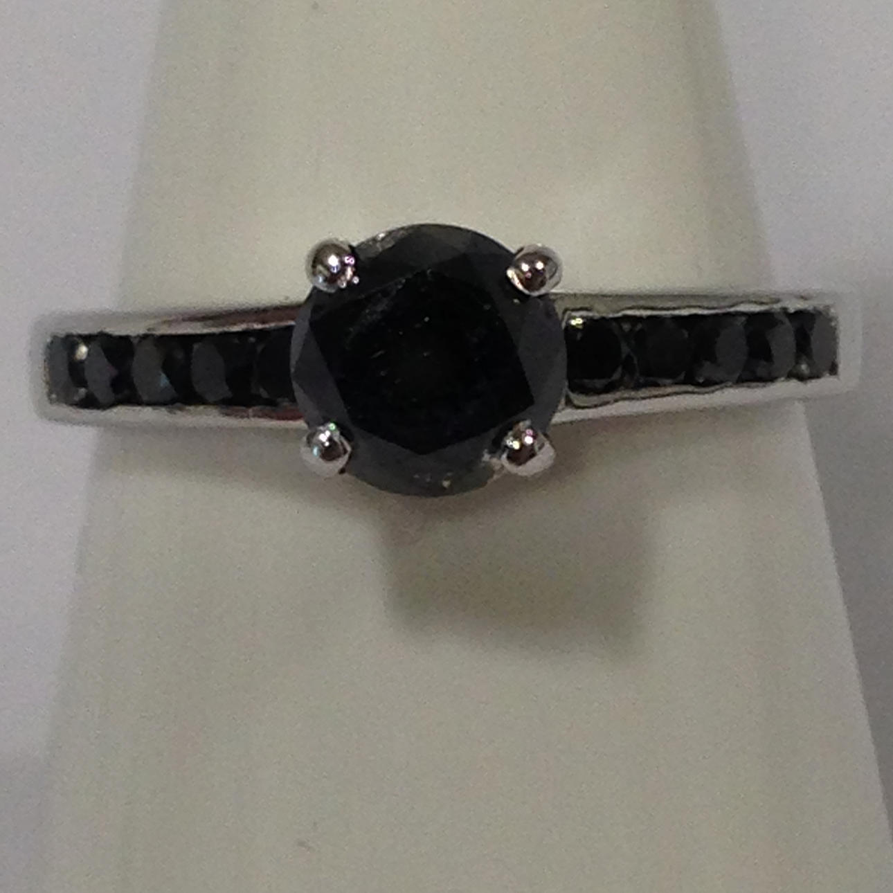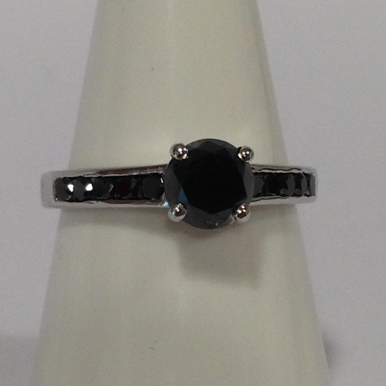 Ringen är inställd med en stor central runda briljant slipad svart diamant som har en ungefärlig diamant karatvikt 1.00ct.