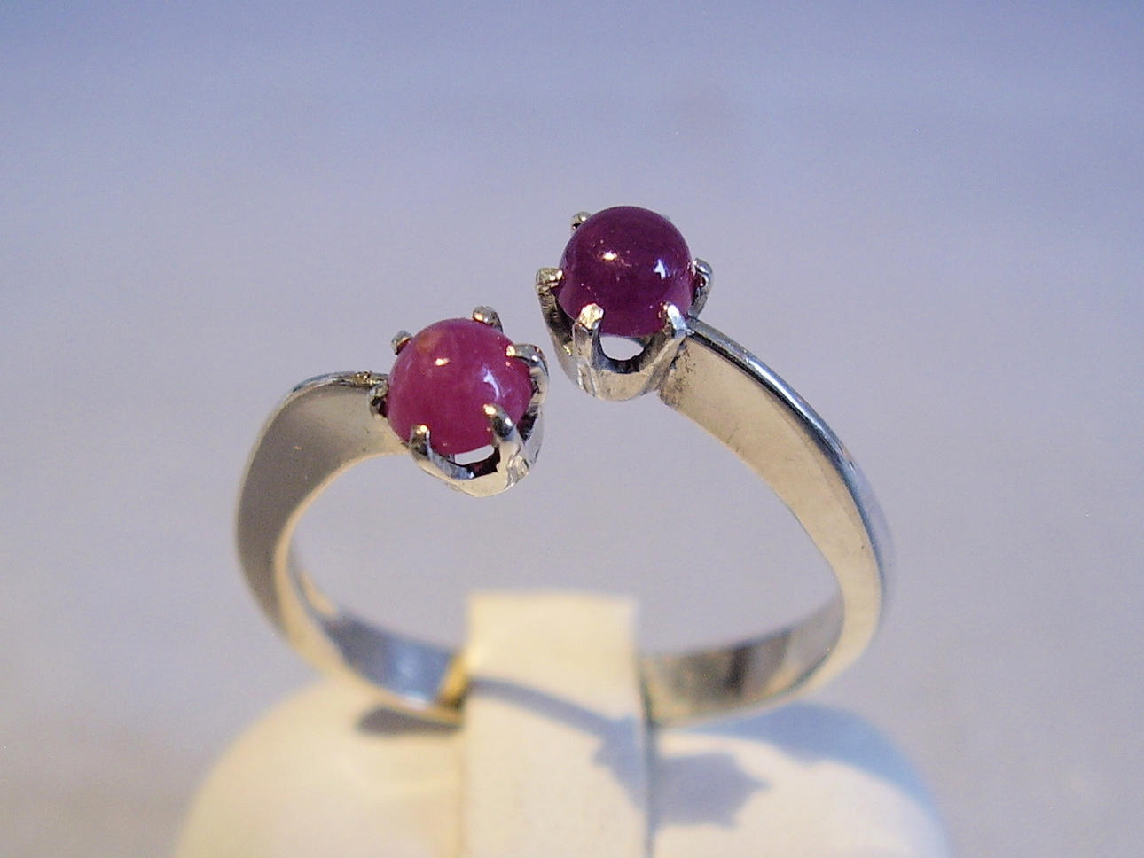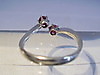 Den har en öppen ringskena som är inställd med två runda naturliga rubincabochoner.
