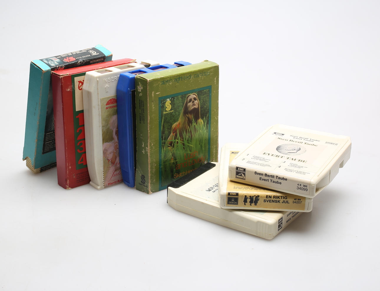 Med 8 kasetter. Höjd ca. 29 cm.