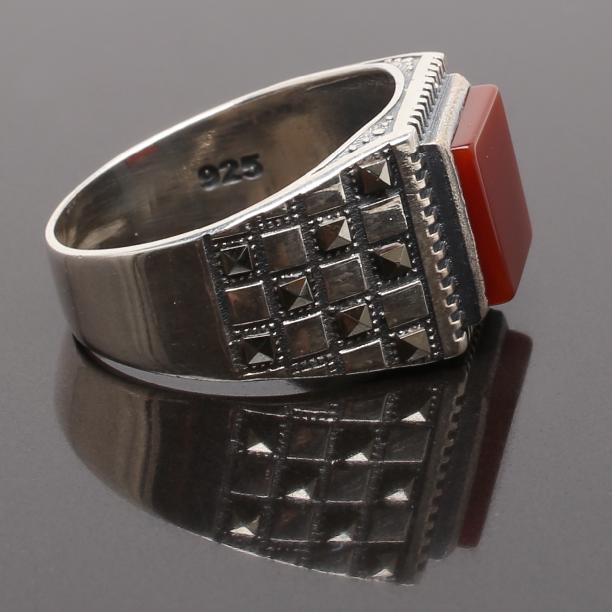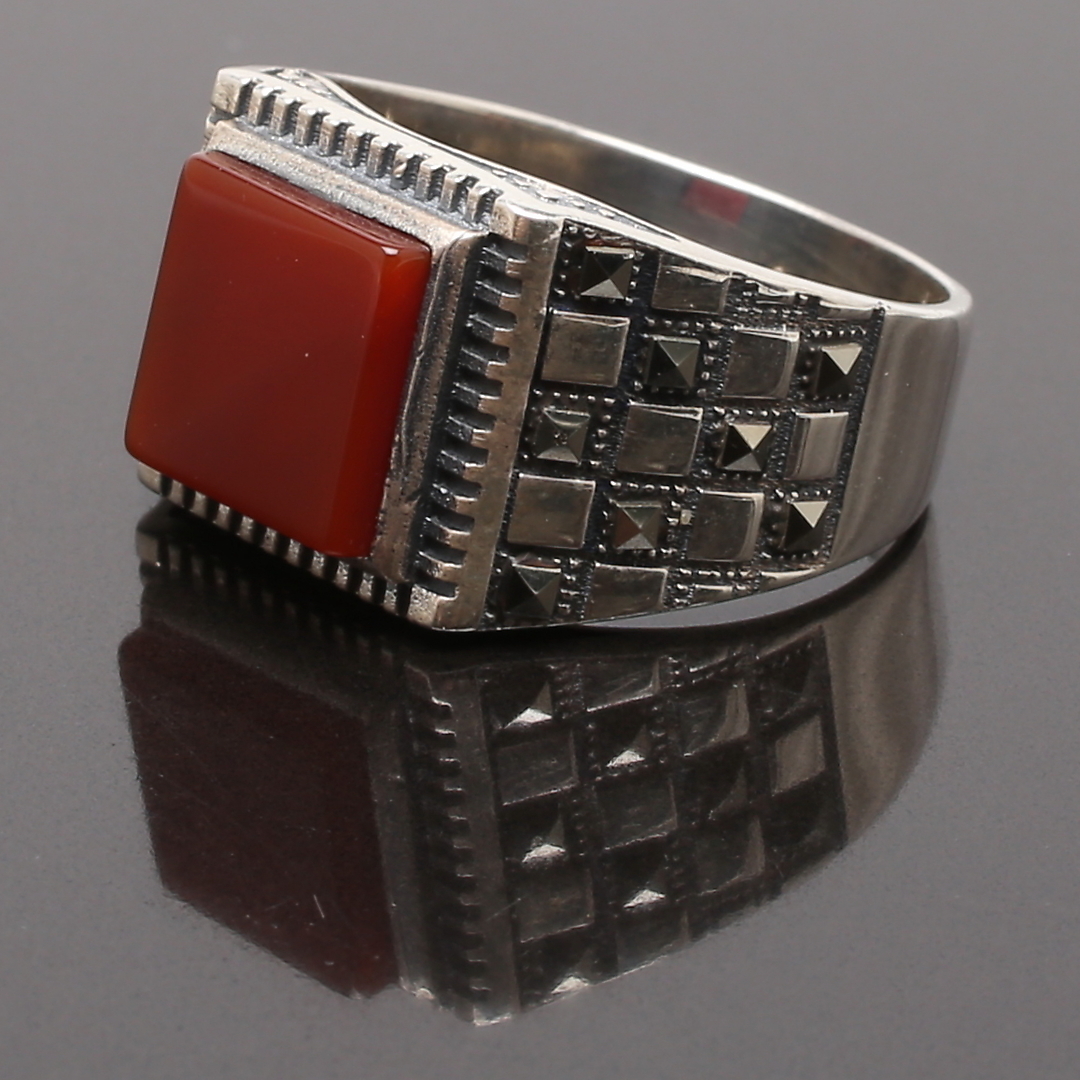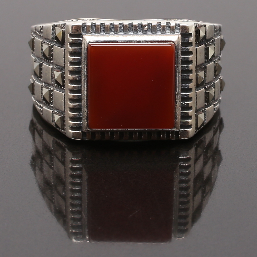 819883. RING silver med carneol och markasiter.