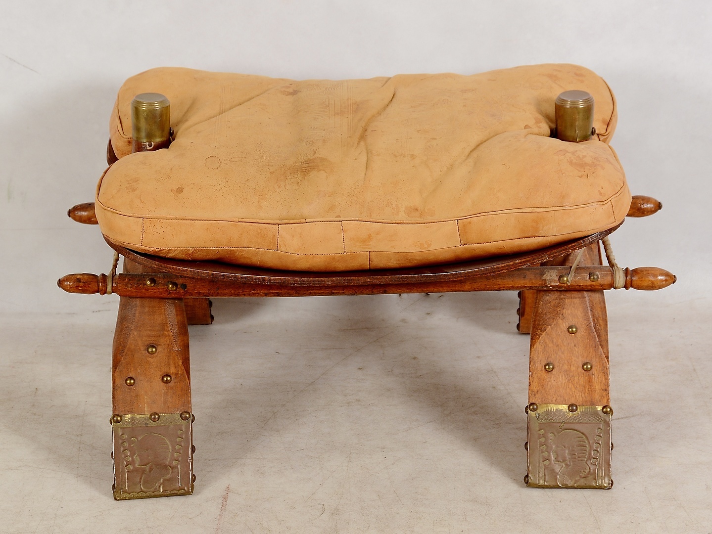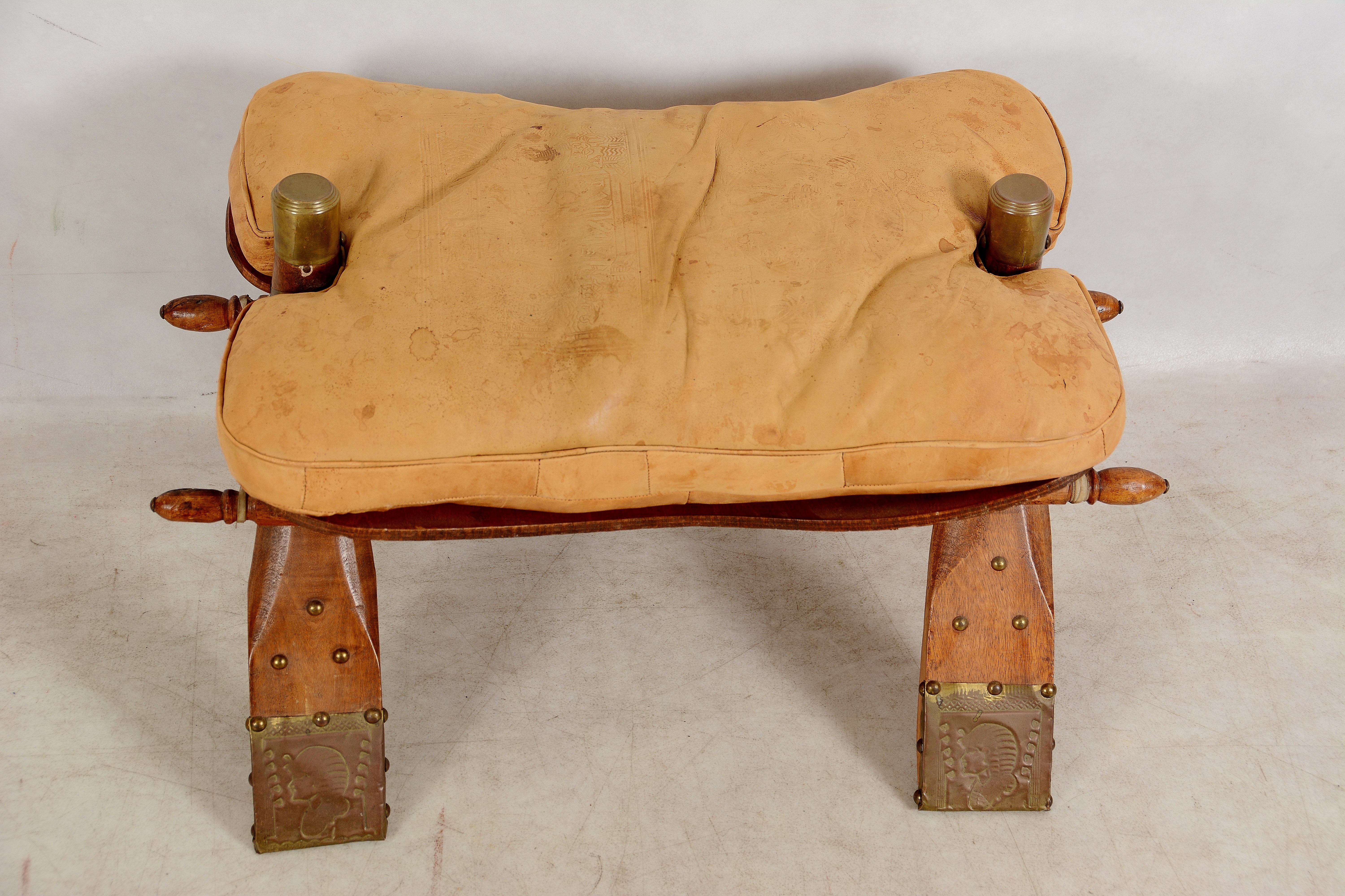 822769. KAMELPALL, trä och läder, 1900-tal.