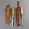 Klassiska jakt knivar tillverkade av masurbjörk.