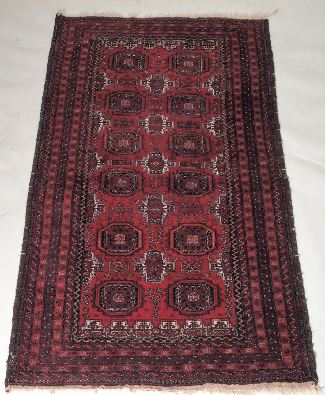 Lagad skada, se bild. Slitage på fransar i övrigt bruksslitage.