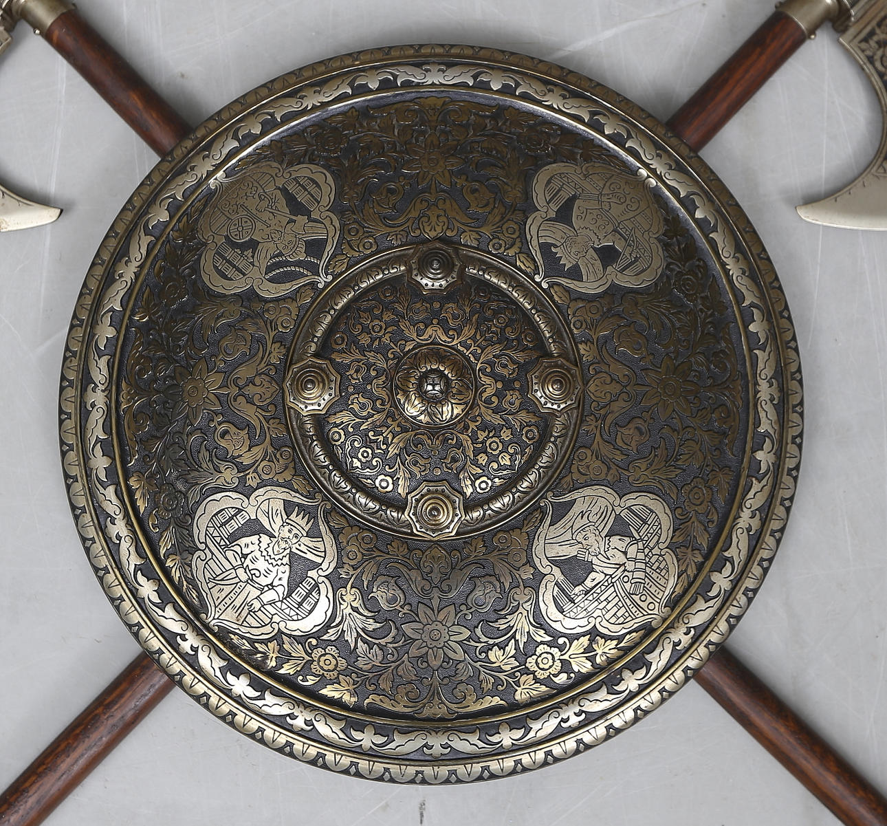 829893. VÄGGDEKORATION, yxor/sköld, 1900-tal.
