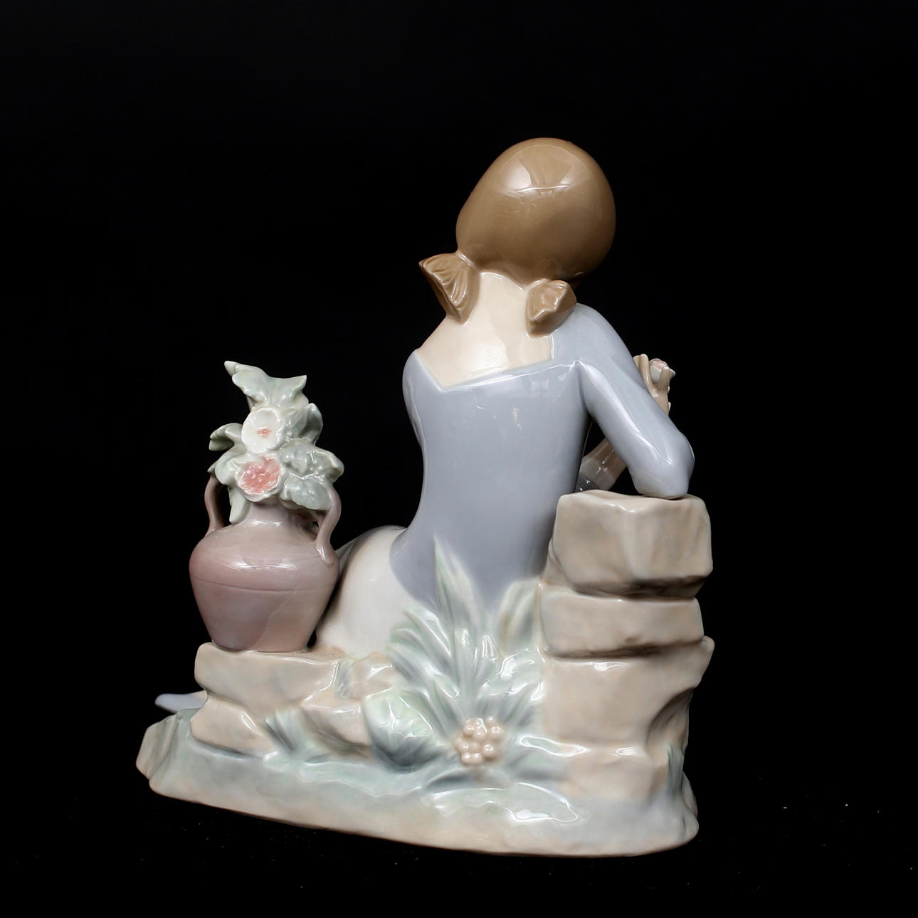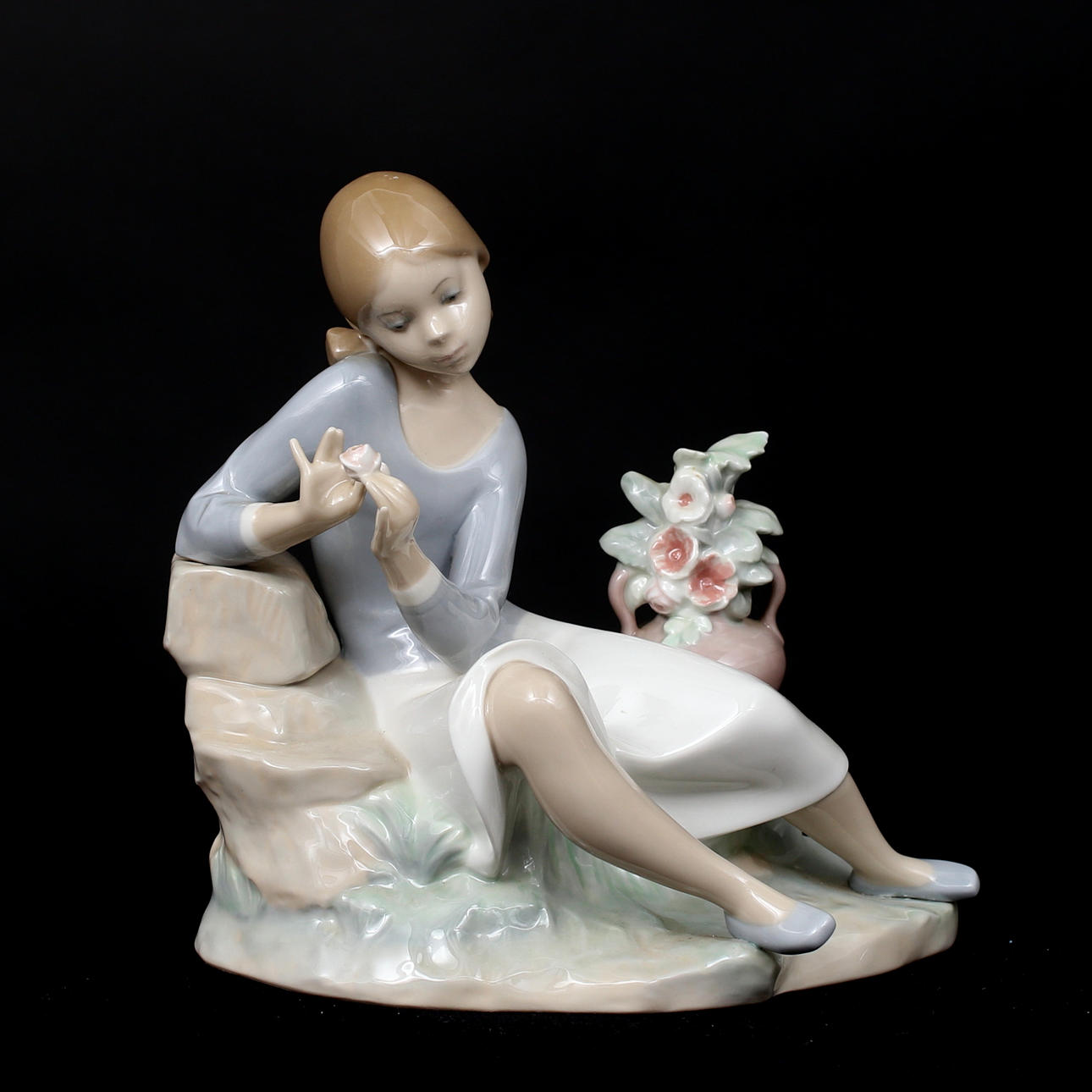 FIGURIN, porslin, flicka med blomma, Lladro, Spanien.