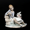 830288. FIGURIN, porslin, flicka med blomma, Lladro, Spanien.