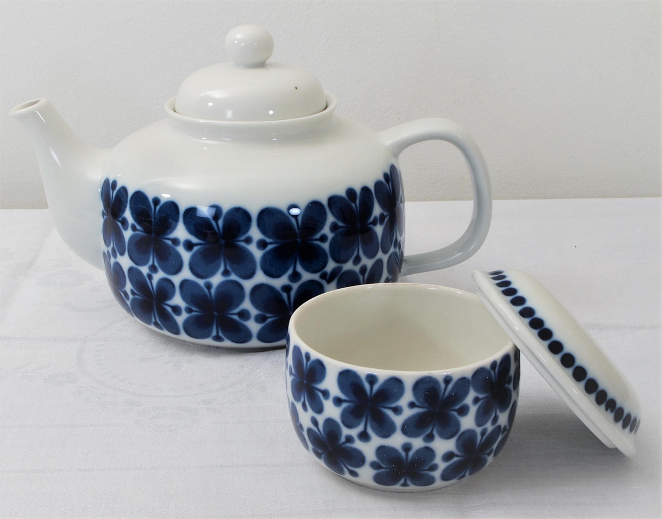 Sockerskål med lock, höjd 7,5 cm, dia 9 cm.