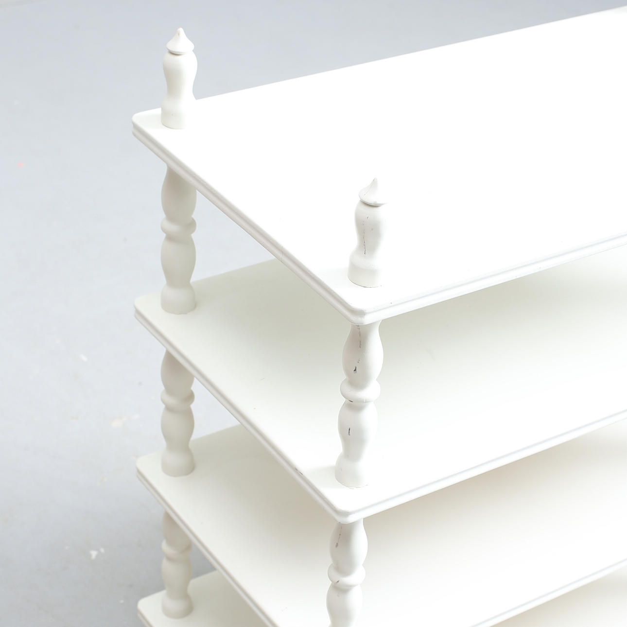 831683. BOKHYLLA, svarvade ben, vitmålad.