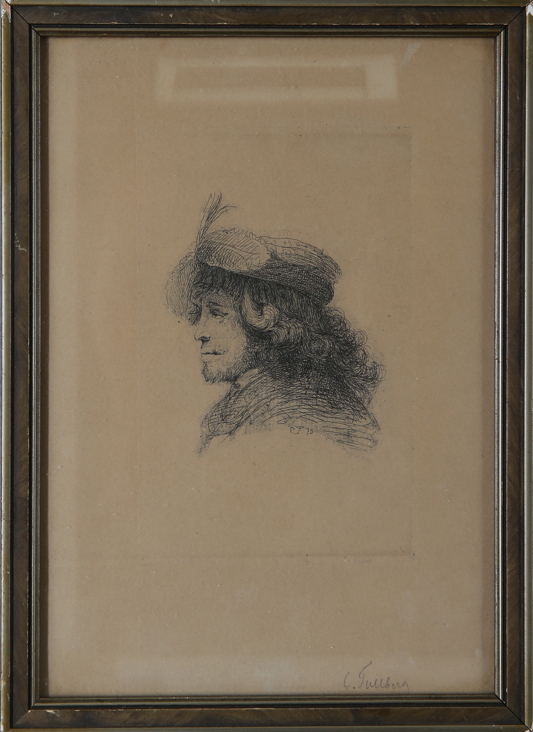 832058. CARL TULLBERG. Etsning, porträtt, signerad.