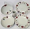 Tre mattallrikar, dia 28 cm Tre djupa tallrikar, dia 23,5 cm En kanna, höjd 13 cm.