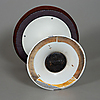 Fot i vitmålad metall. Diameter 39, höjd 42 cm.