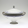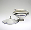 Uppsvängda hänklar, lock krönt med kotte. Längd ca 38 cm. Höjd ca 32 cm.