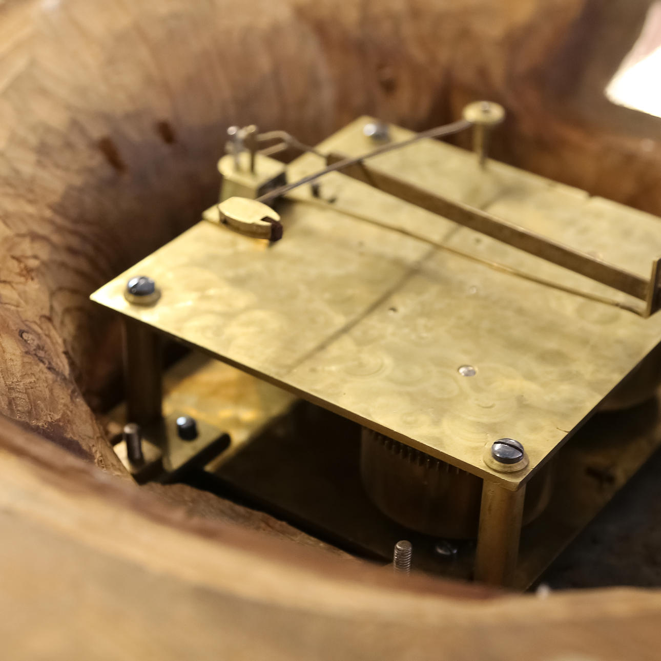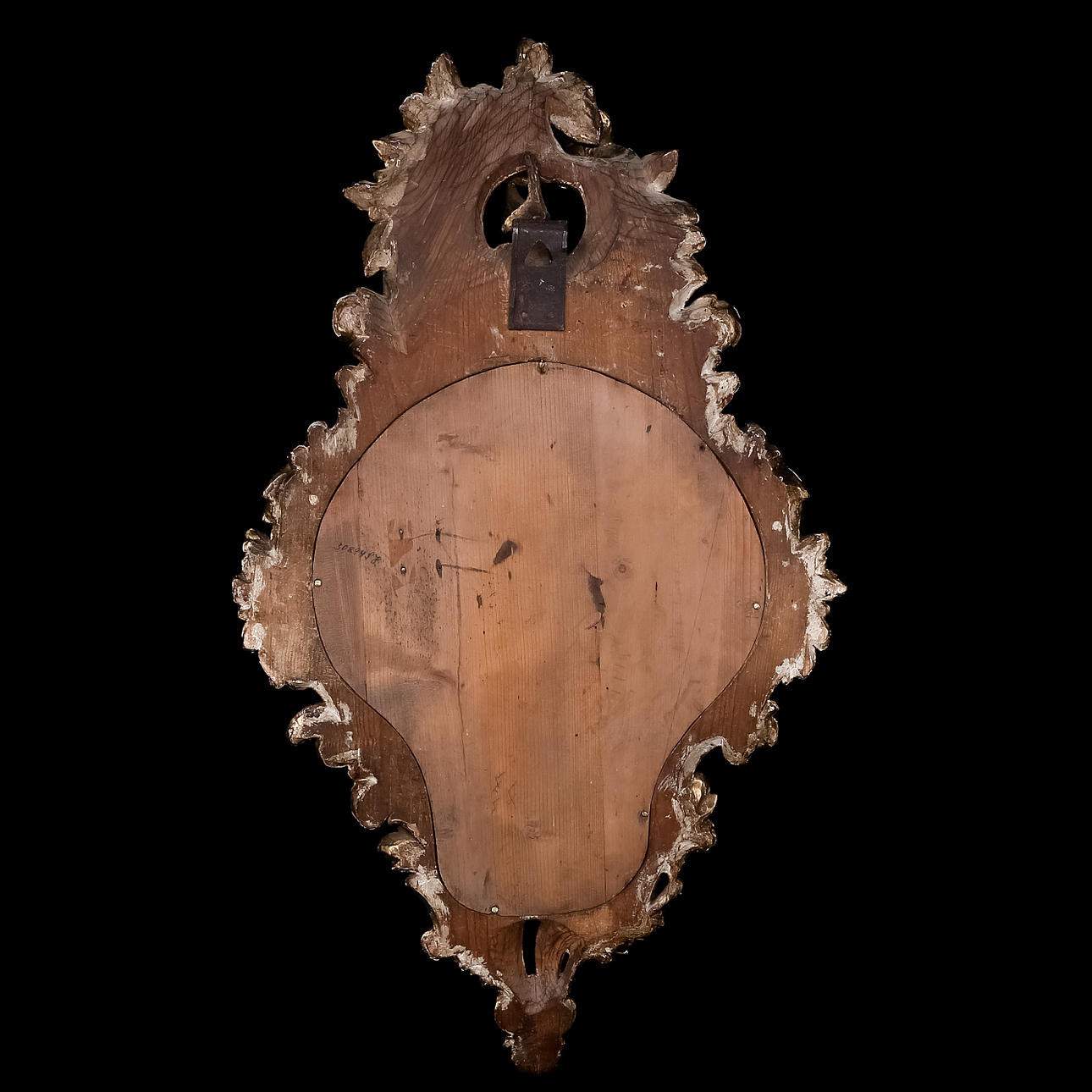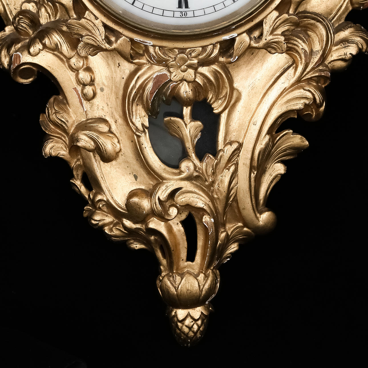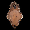 Mindre dekorsläpp. Möjligen senare bakstycke. Fäste till pendel saknas.