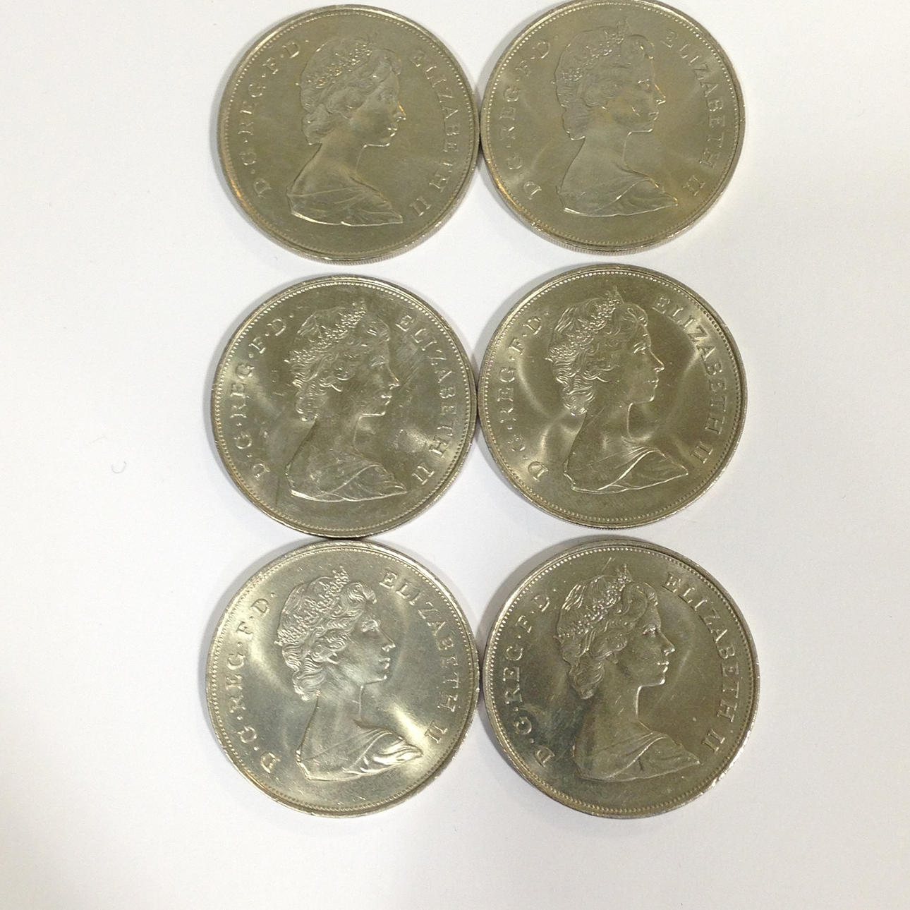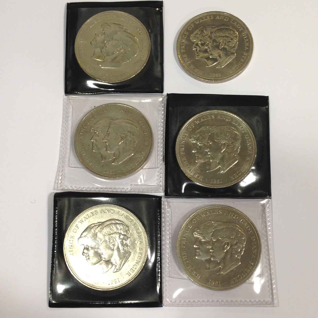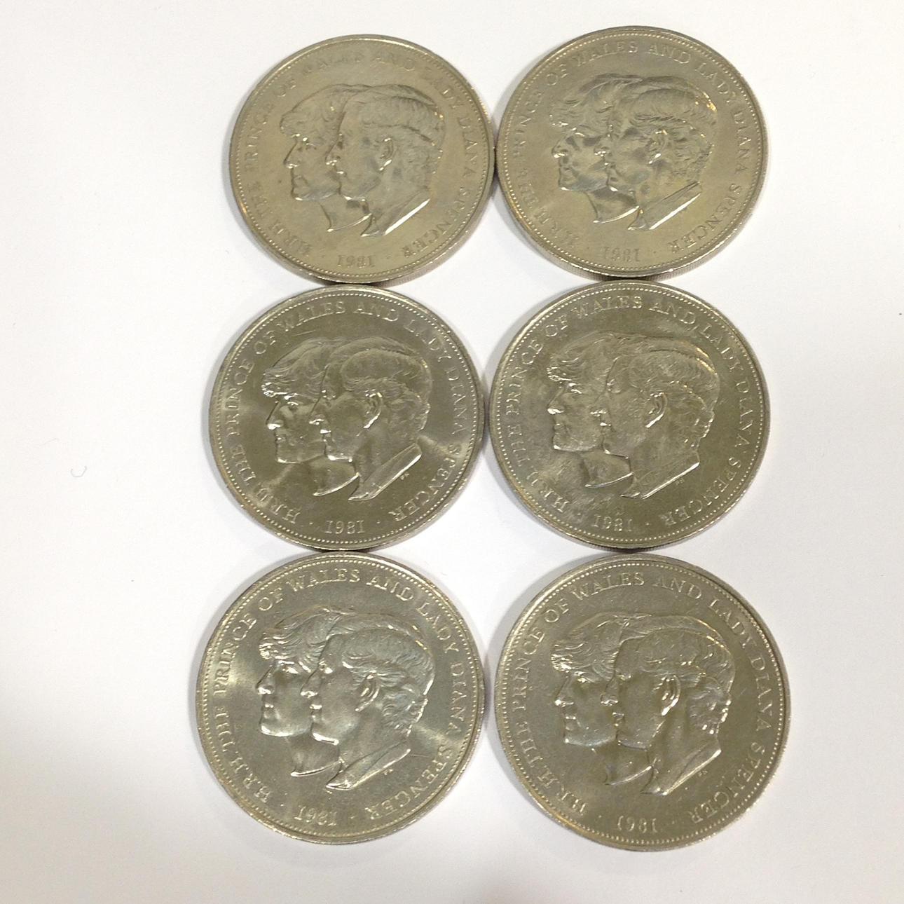 3. Sex mynt från Charles och Diana 1981 i sina fall.