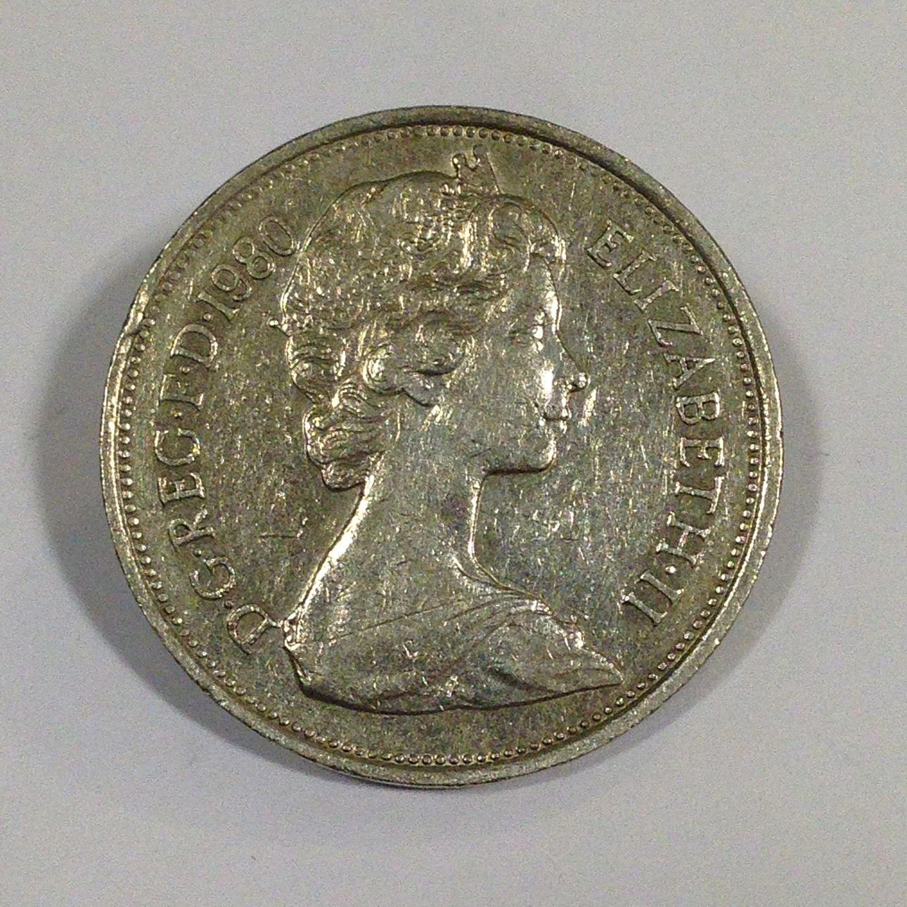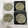 2. Fyra 1980 Drottningmor mynt i sina fall.