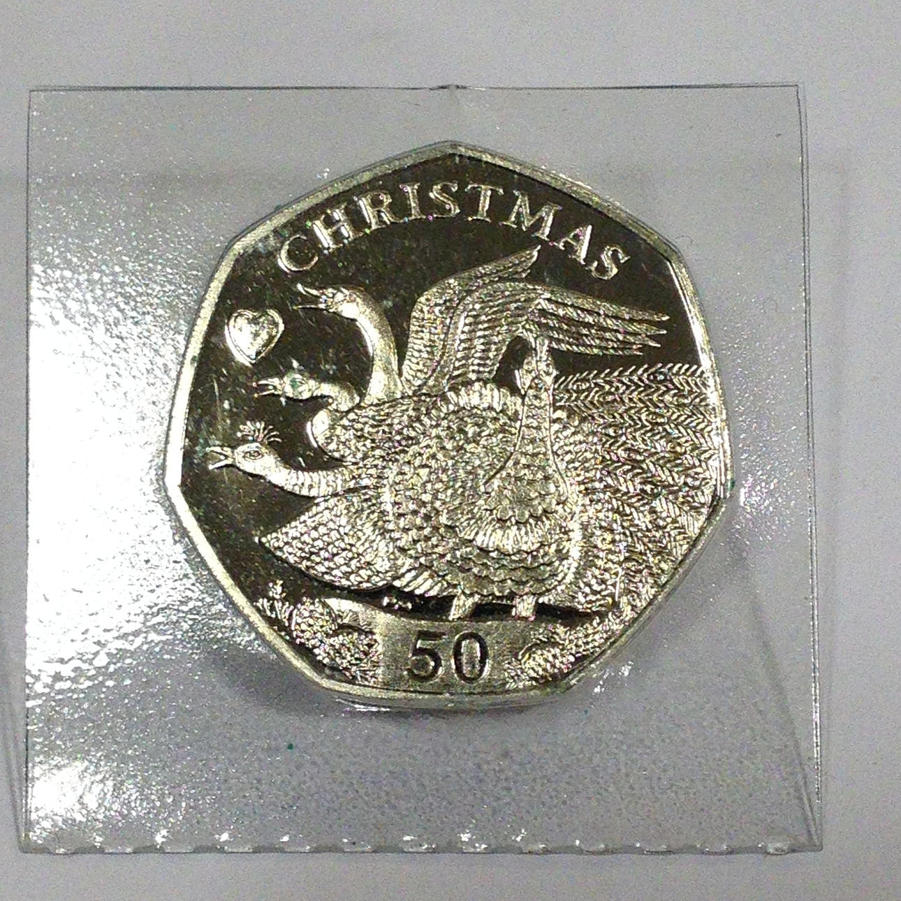 6. En 2008 Isle of Man jul 50 pence mynt i ett fall.