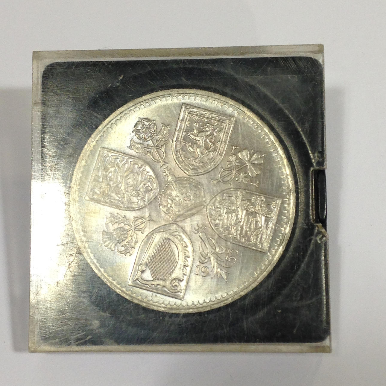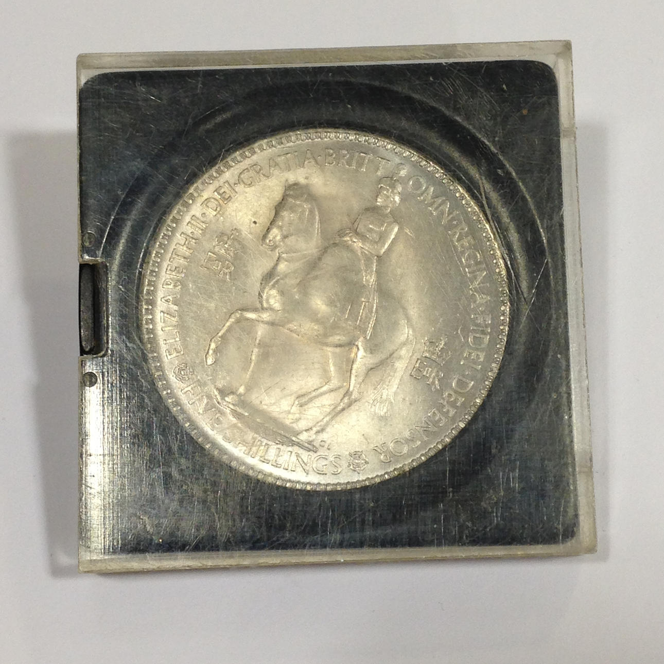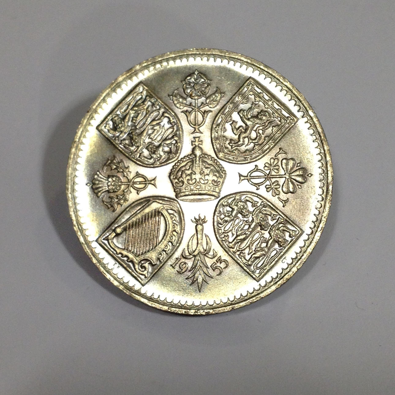 10. Ett 1953 Elizabeth II femshillingsmynt i originaletui.