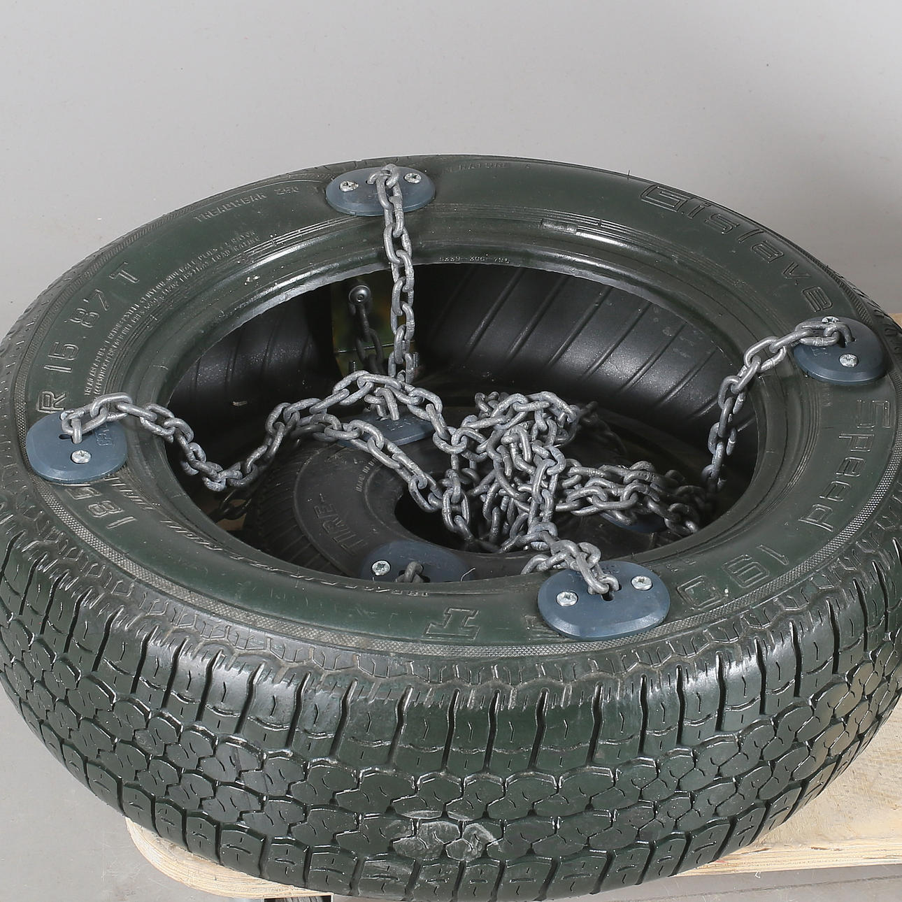 1 st Gislaved däck med extra däck samt kätting. Ålder 3-5 år. nypris 2.250,00 kr.