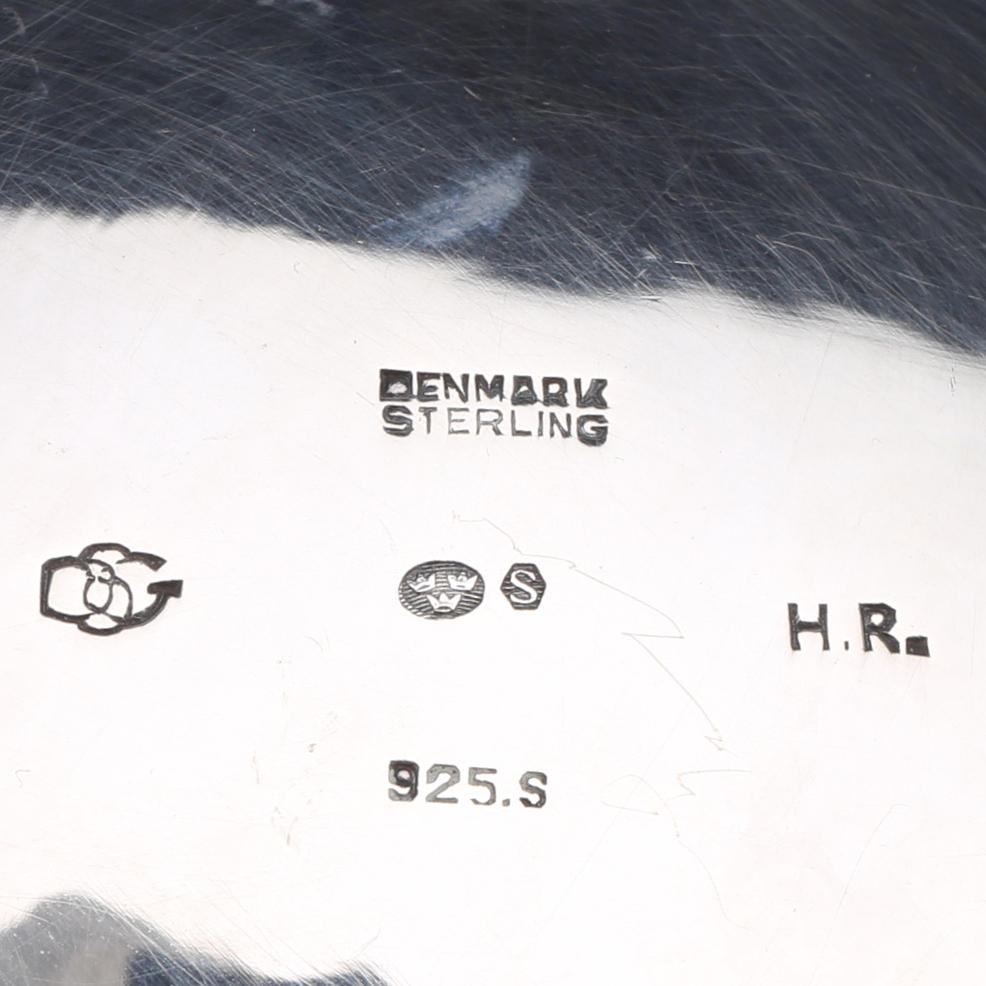 sterlingsilver och betsat trä, monogramstämplad "HR", "DGS" (Danske Guldsmeders sölvevarefabrik) samt med svensk importstämpel, höjd 20 cm, vikt 1290 gram.