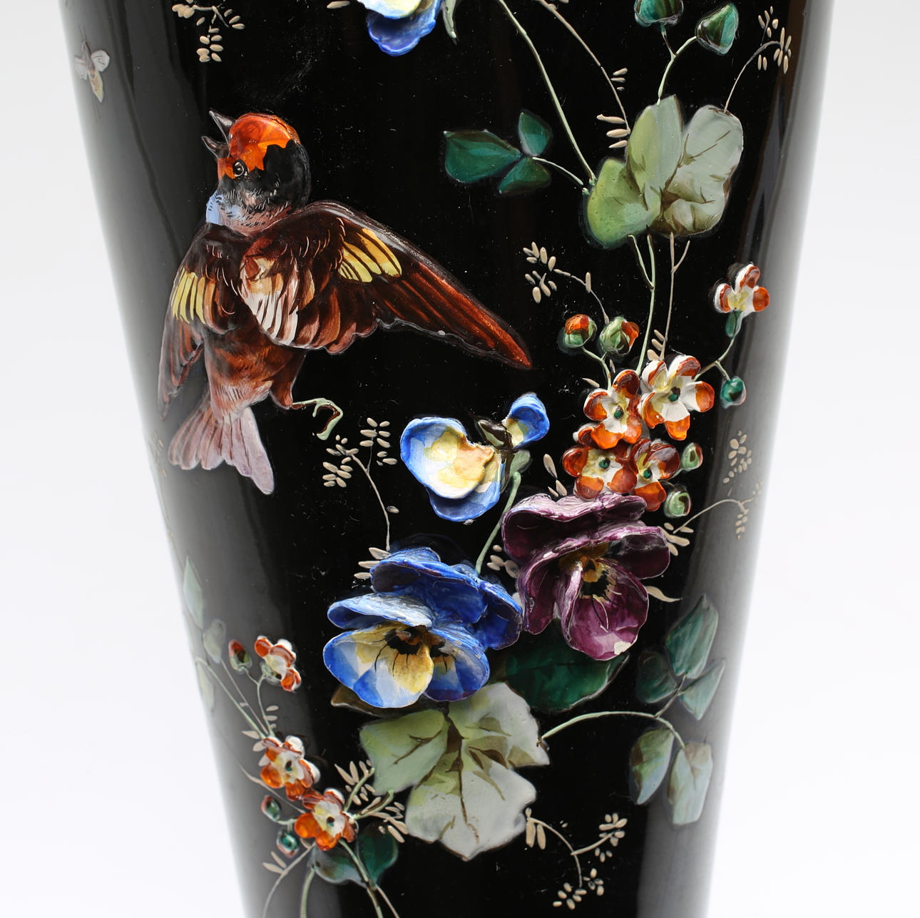 Reliefdekor av blommor. Målad dekor. Höjd ca 44 cm.